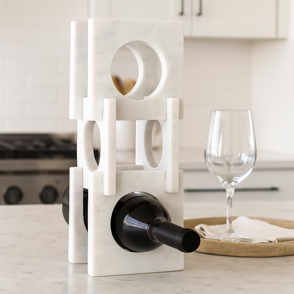 Decorative Marble Wine Holder for Home Decor - Modern Wine Bottle Rack Storage for Bar Accessory, Accent Table, or Cabinet Organizer - Decorative Wine|Kitchen & Dining