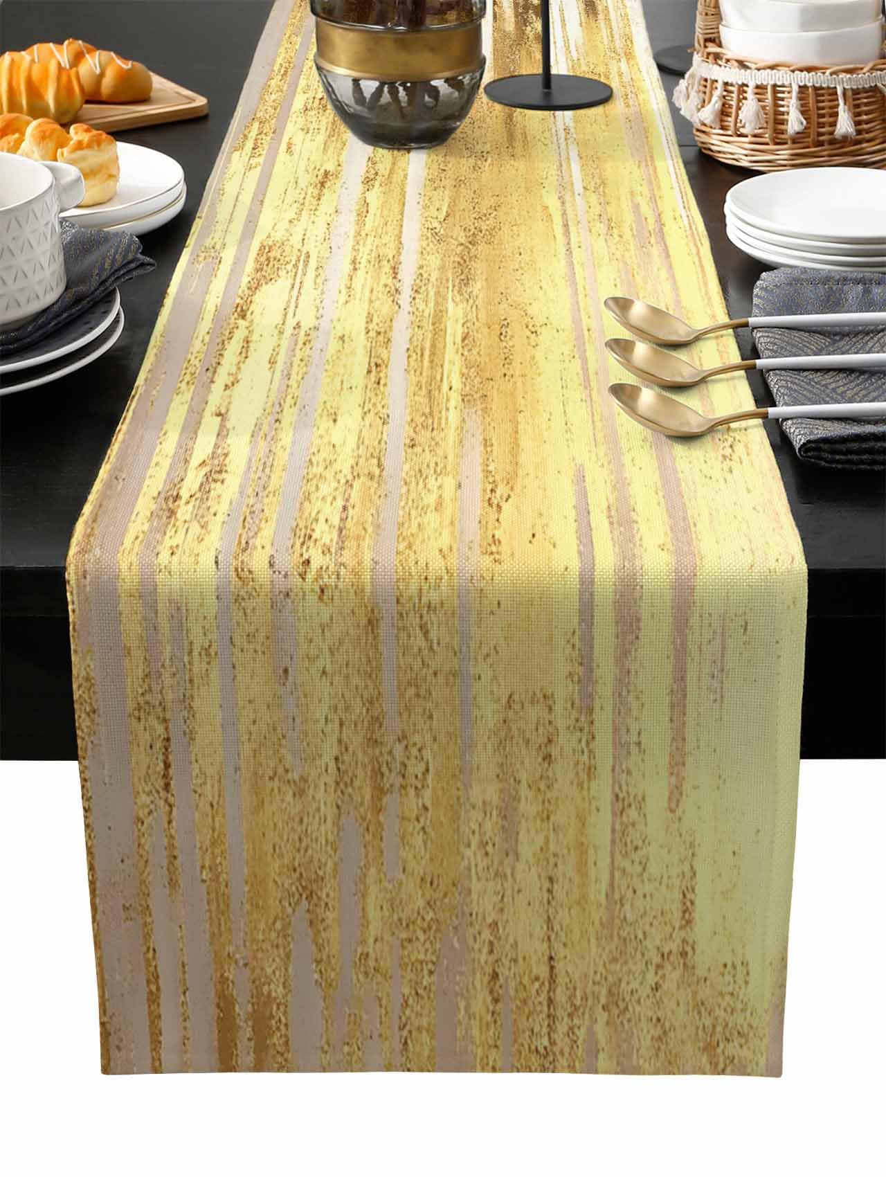 Abstract Gold Table Runner 90 Inches Long for Dining Table Decor,Modern Brush Luxury Strokes Artwork Burlap Linen Farmhouse Table Runner Coffee Table|Kitchen & Dining