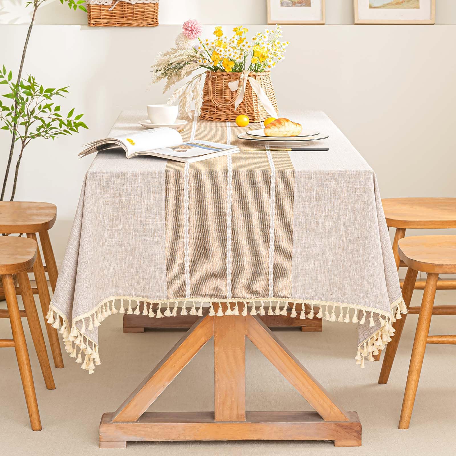 SIELUNO Farmhouse Tablecloth Cotton Linen Waterproof Burlap Table Cloth Rectangle Table Cloths for Kitchen Dinning Tabletop Decoration-Coffee|Kitchen & Dining