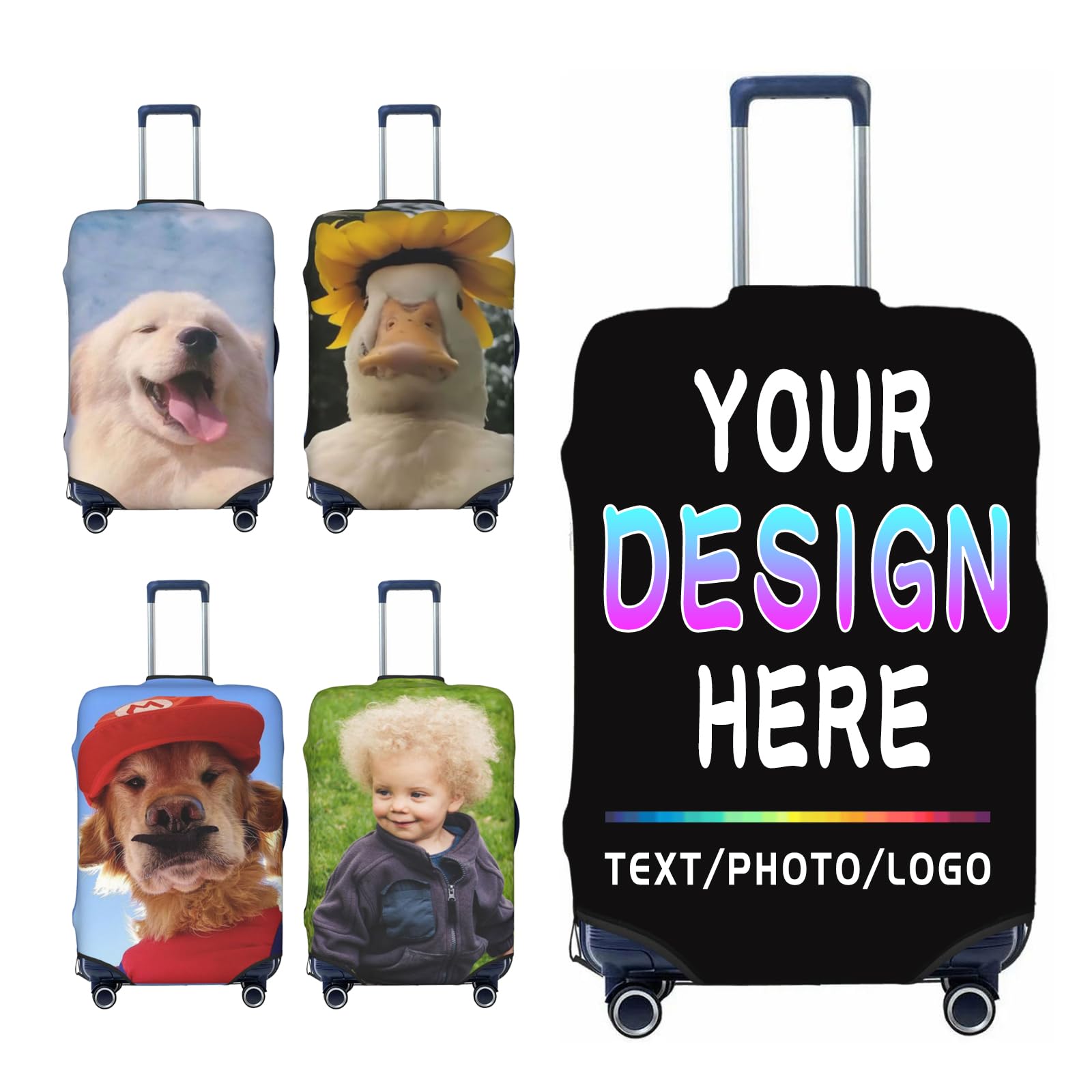 Personalized Photo Luggage Covers for Suitcase, Custom Travel Carry on Cover Protector Wrap Gift for Men Women Kids Couples Business Travelers|Luggage & Bags