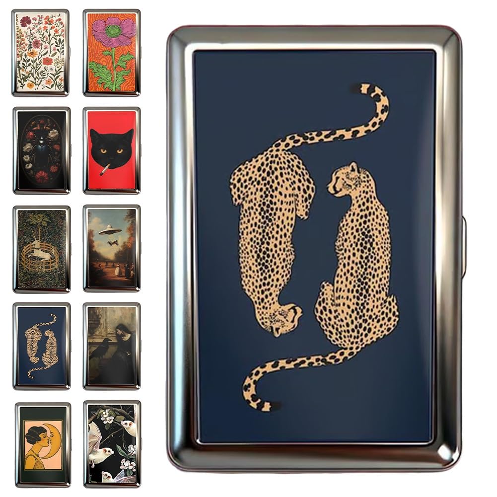 AOMYK Vintage Art Deco Versatile Card & Cash Case, Vintage-Style Metal Wallet for Credit Cards, Easy Snap Closure(Leopards)|Luggage & Bags
