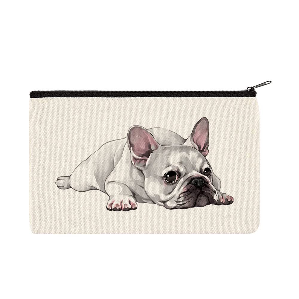 WIRESTER Canvas Zipper Makeup Bag, Cosmetic Pouch, Organizer Case for Women Girl, Multi-Purpose Travel Cosmetic Bag - French Bulldog Dog Lying Down|Luggage & Bags