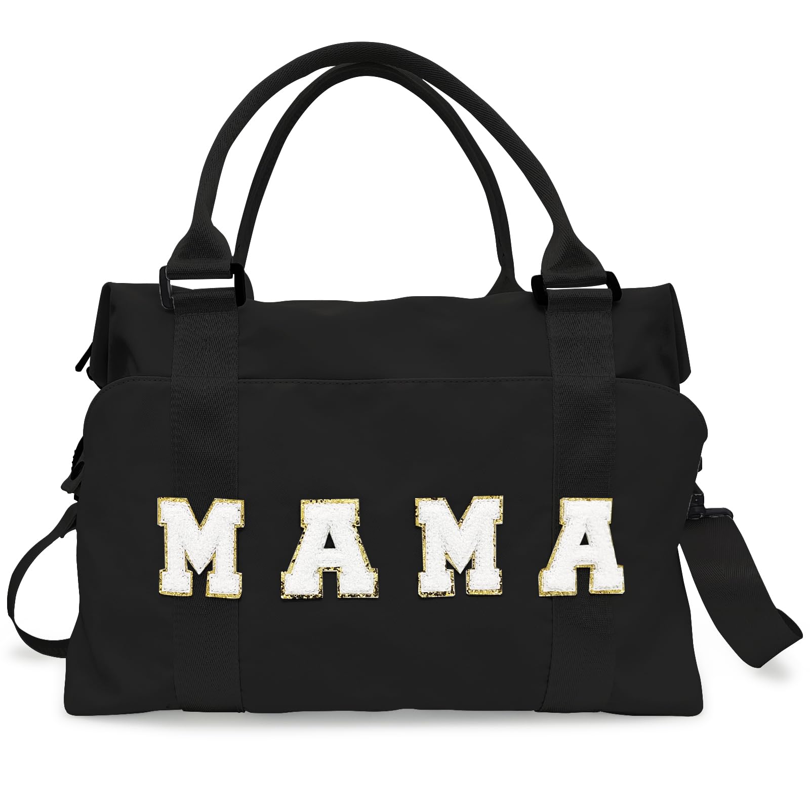 Chenille Letter Duffle Bag, Mama Bag With Patches, Nylon Chenille Letter Embroidered Travel Bag, Lightweight Adjustable Mom Hospital Bag With Zipper|Luggage & Bags
