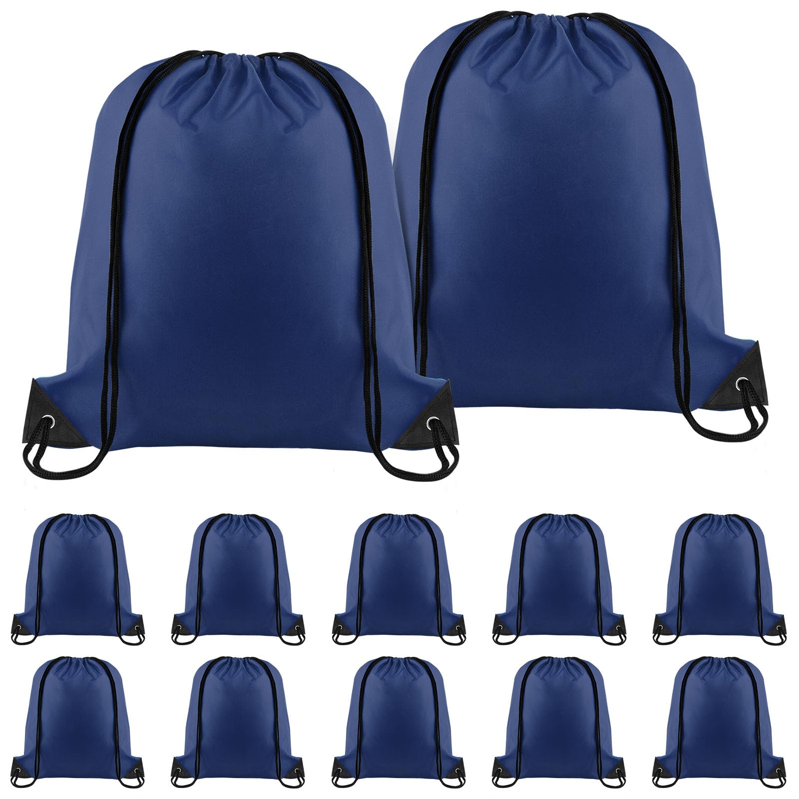 NACHLYNN 12 Pieces Drawstring Backpack Bulk Dark Blue Nylon Draw String Sport Bag DIY Drawstring Bags Sports Bag Tote Sackpack for Boys Girls Women|Luggage & Bags