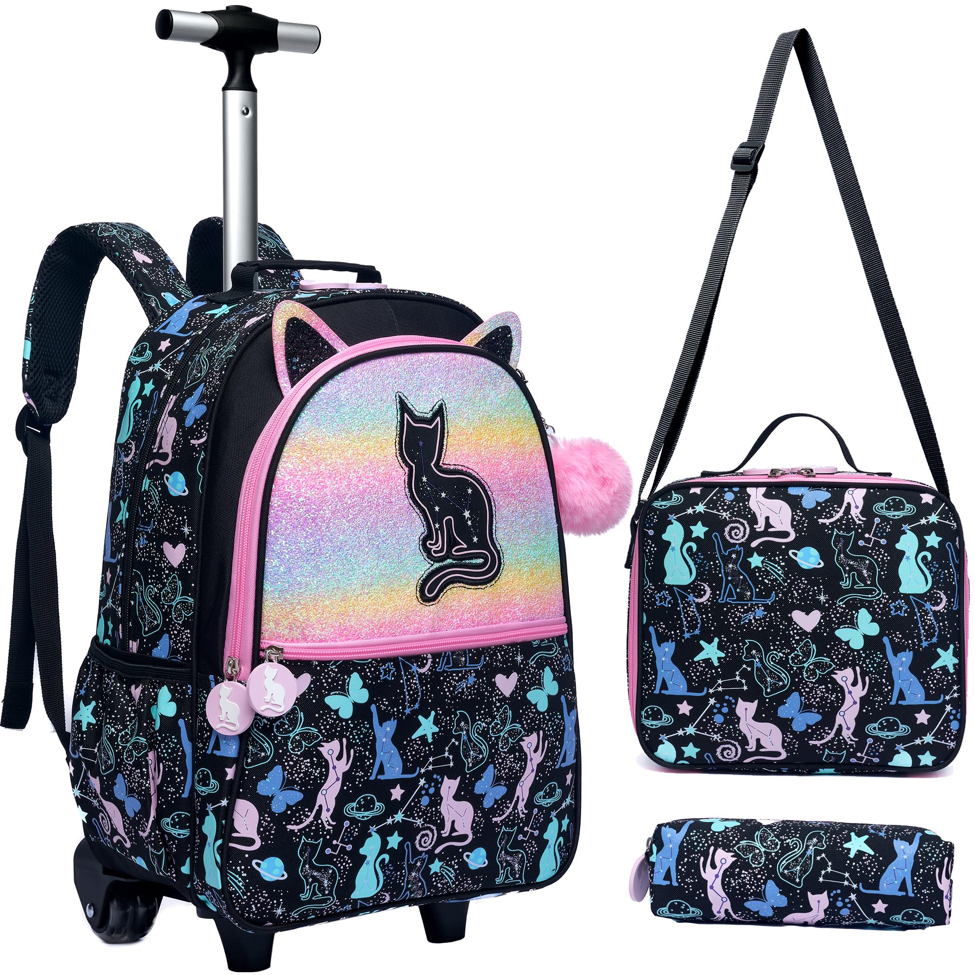 Rolling Backpack for Girls Cute Backpack with Wheels Sequin Kids Suitcase for Girls with Lunch Box Set Kids Carry On Luggage with Wheels for|Luggage & Bags