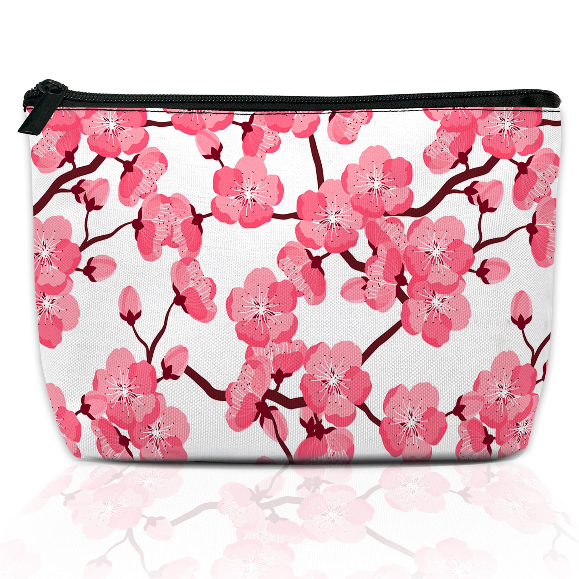 DEMACYA Cherry Blossom Makeup Bag for Purse, Waterproof Funny Japanese Pink Sakura Cosmetic Bag for Women, Zipper Travel Pouch Gift 9.5×5.9 Inch|Luggage & Bags