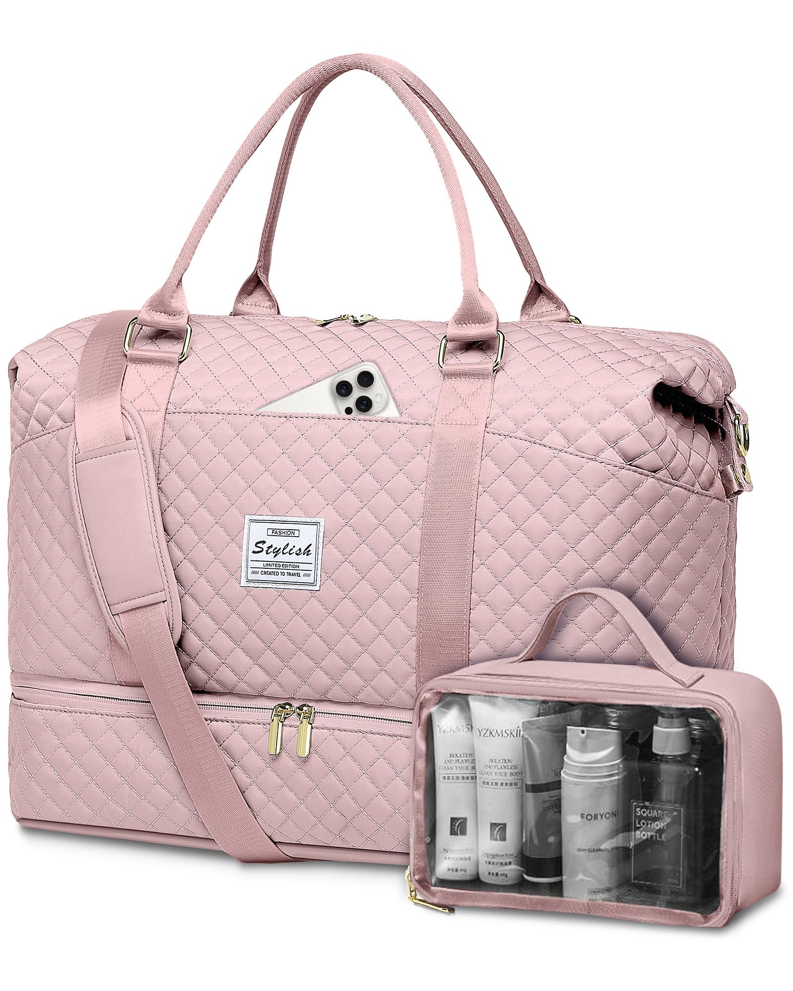 Weekender Duffle Bags for Women - Travel Duffel with Shoe Compartment, Carry On Overnight Bag, Gym Tote with Wet Pocket, Pink|Luggage & Bags