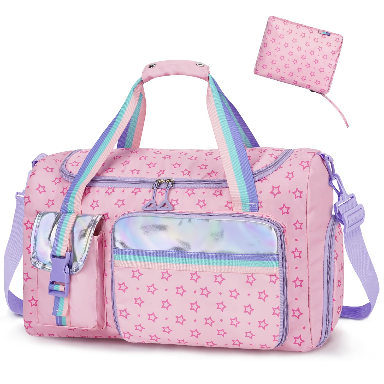 WOOMADA Travel Duffle Bag, Weekend Bag with Wet Pocket & Trolley Sleeve, Gym Dance Bag With Shoe Compartment(Star Pink)|Luggage & Bags