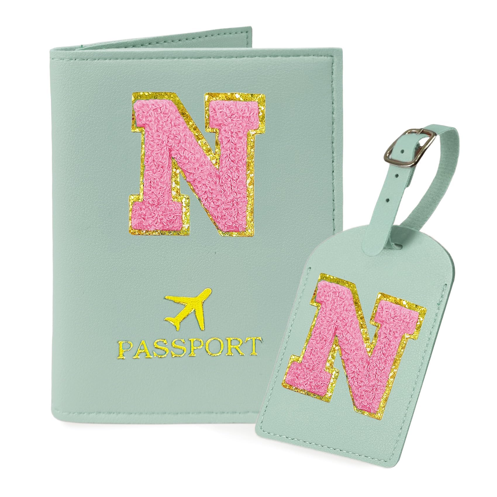 COSHAYSOO Initial Passport Cover Luggage Tag Set Letter Passport Holder Airplane Cruise Travel Essentials Vacation Traveling Accessories Personalized|Luggage & Bags