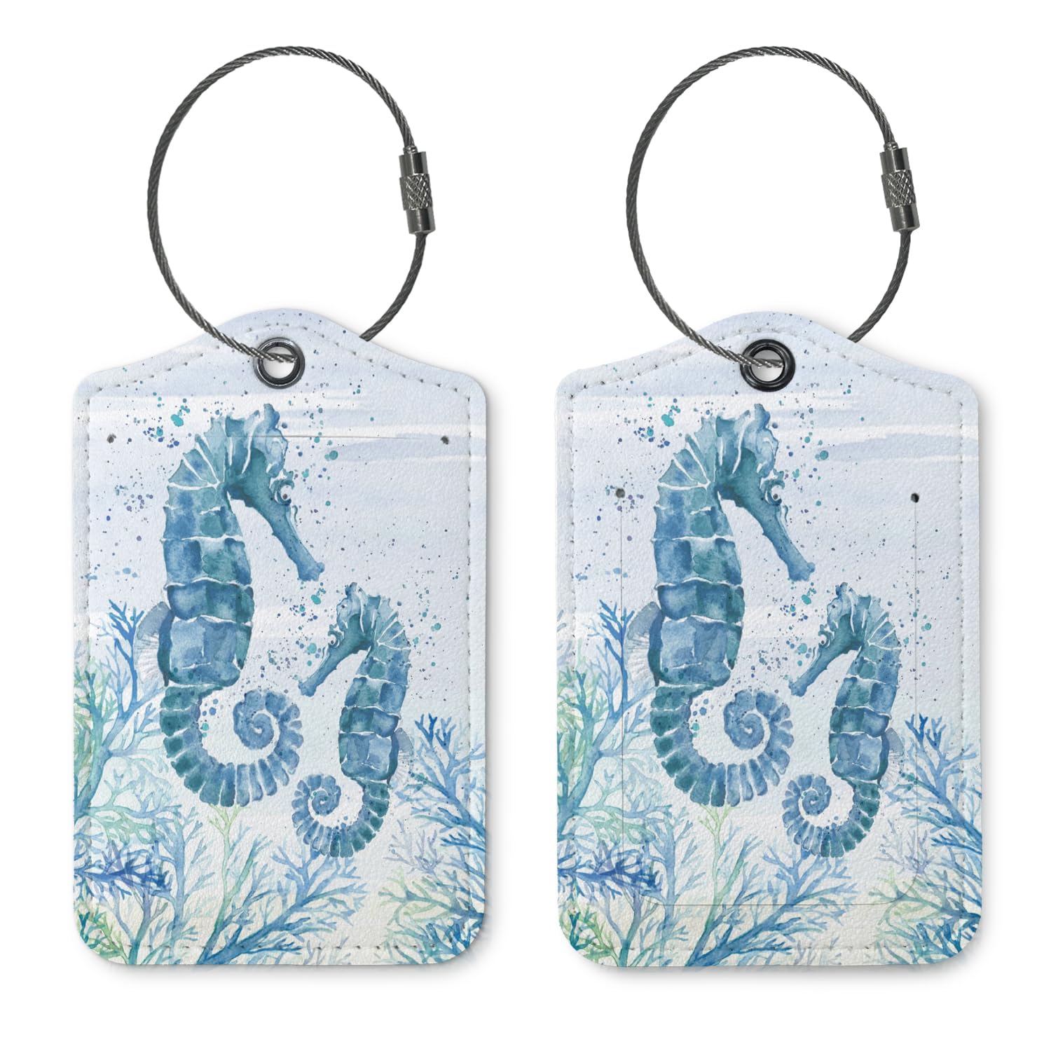 ZFQ Beach Summer Luggage Tags for Suitcases, Cute Sea Horse Travel Personalized Suitcase Luggage Tags for Women Teen Girls Children, 2 Pack Bag Tags|Luggage & Bags
