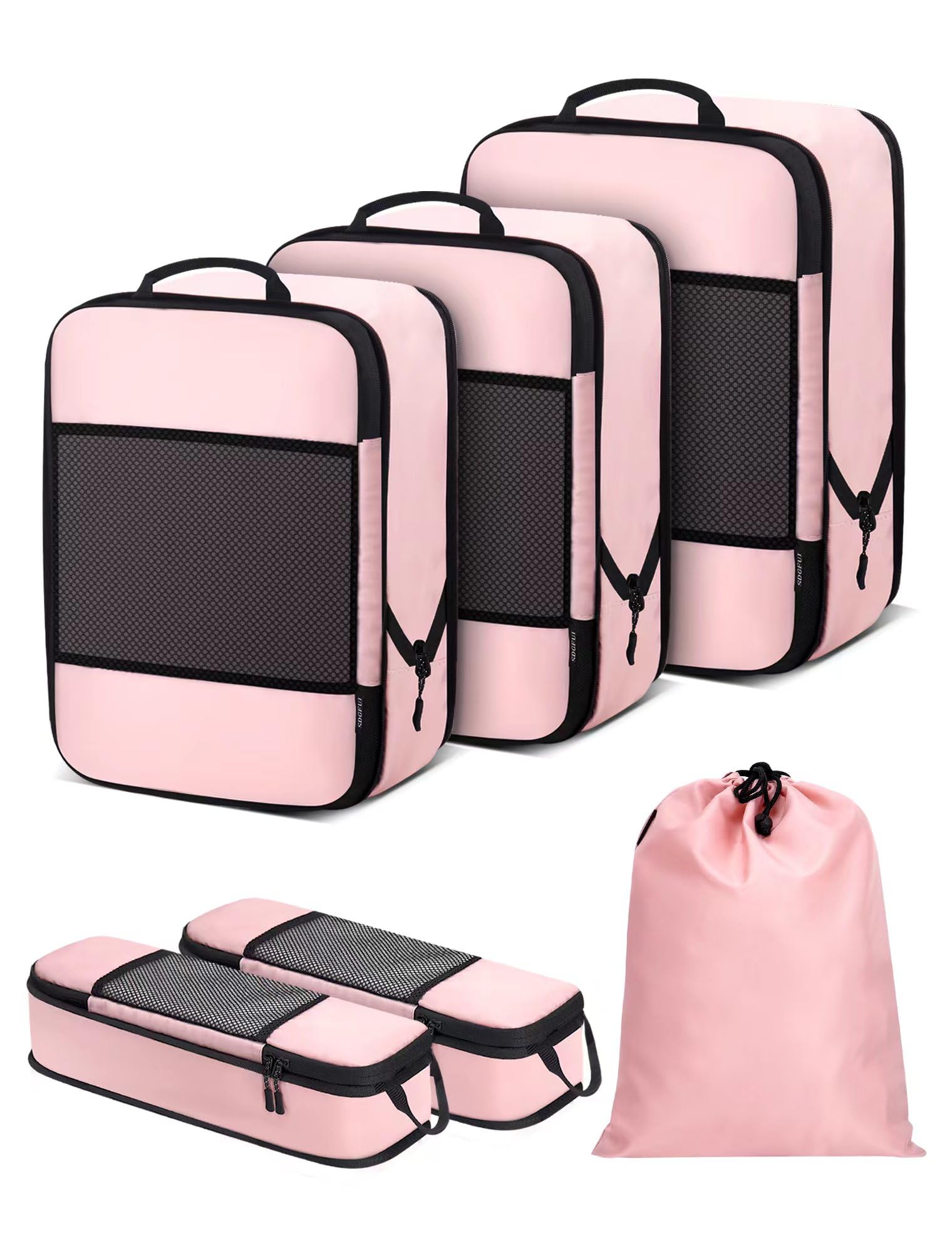 SDGFUI 6 PCS Set Compression Packing Cubes for Travel, Lightweight Packing Organizer Bags Travel Essentials for Carry On, Suitcase, Home Closet - Pink|Luggage & Bags