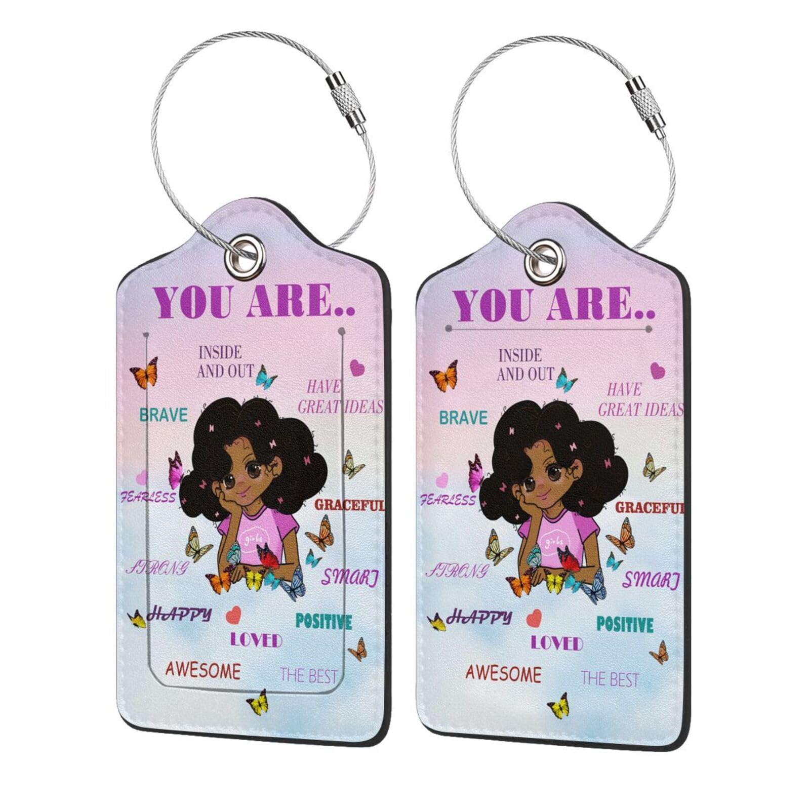African American Girl Luggage Tags for Suitcases, 2 Pack Cute PU Leather Luggage Tag with Stainless Steel Loop Privacy Cover ID Label Travel Bag|Luggage & Bags