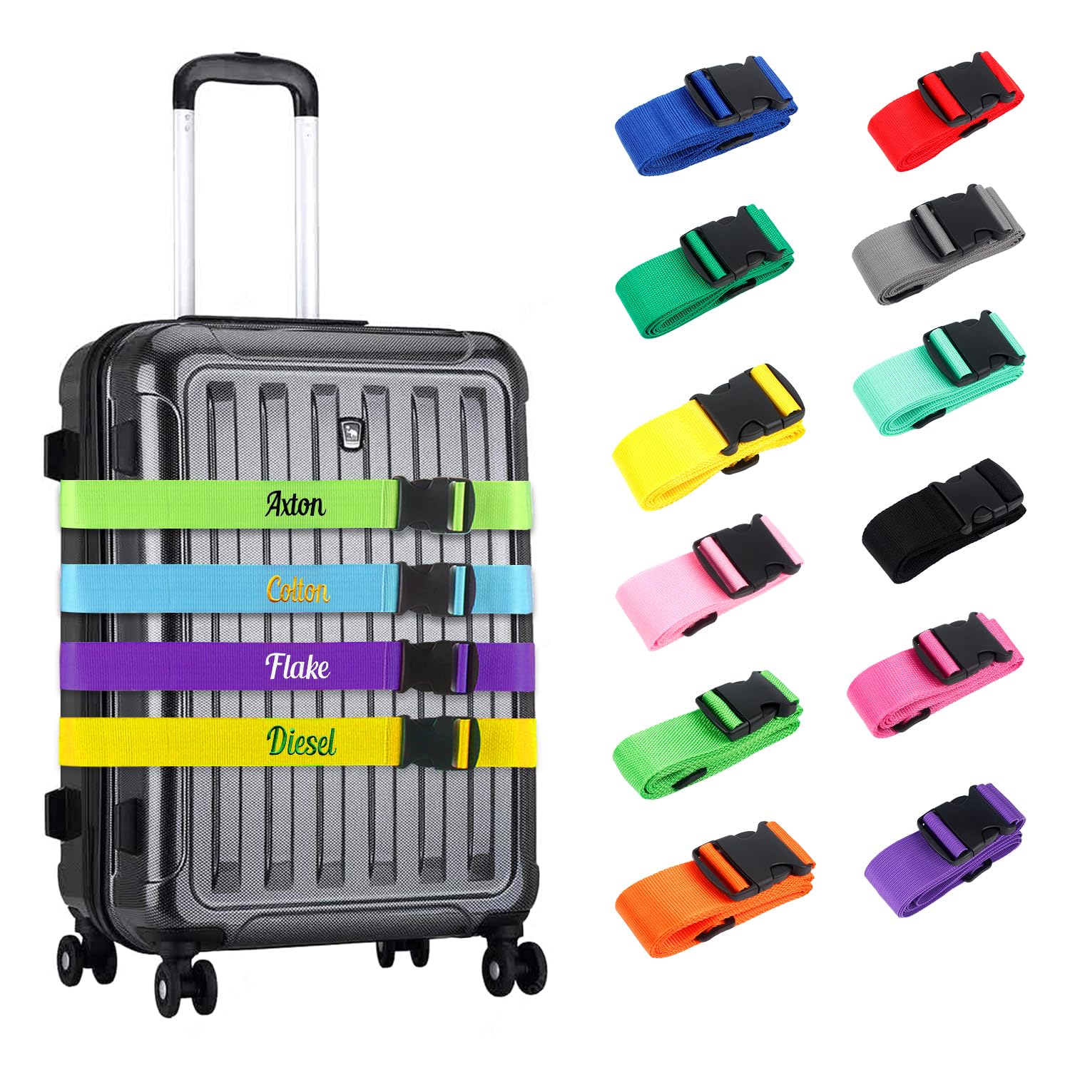 Personalized Luggage Straps, Custom Suitcase Strap with Embroidered Name,Adjustable Suitcase Strap Belt for Secure Travel, Easy Baggage Identification|Luggage & Bags