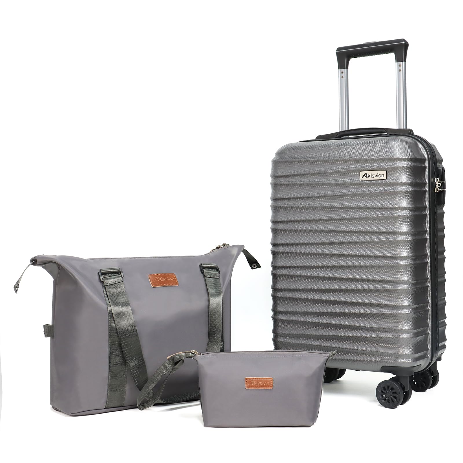 Aklsvion Luggage Set 3 Piece Luggage Set ABS hardshell Spinner Wheels Luggage Carry on Suitcase with Weekender bag & Toiletry bag(Grey)|Luggage & Bags