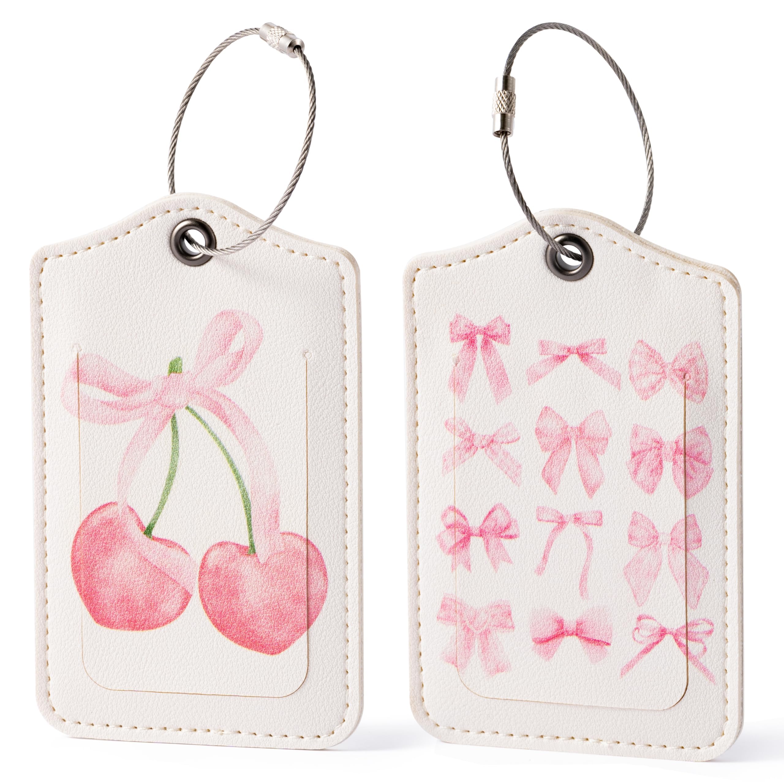 BkeeCten Pink Luggage Bag Tag - 2 Pcs Pu Leather Pink Bow Cruise Ship Pack Initial Luggage Suitcase Tag Holder Travel Essentials Accessories Royal|Luggage & Bags