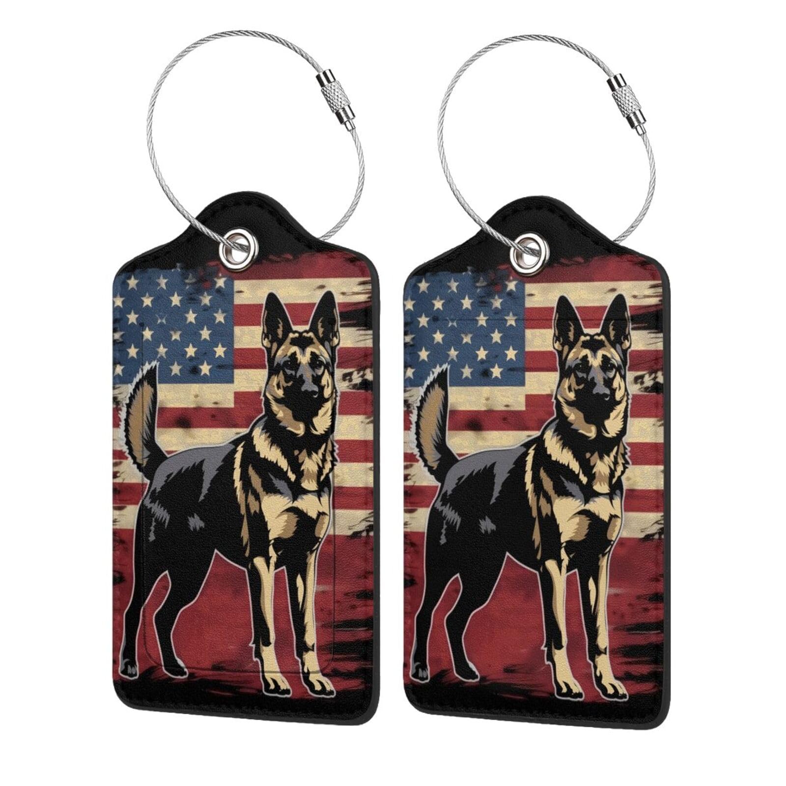 HSYOYO German Shepherd Dog Leather Luggage Tags with Stainless Steel Loop 2 Pack Suitcase Tags Travel Luggage Identifiers for Suitcases Privacy Cover|Luggage & Bags