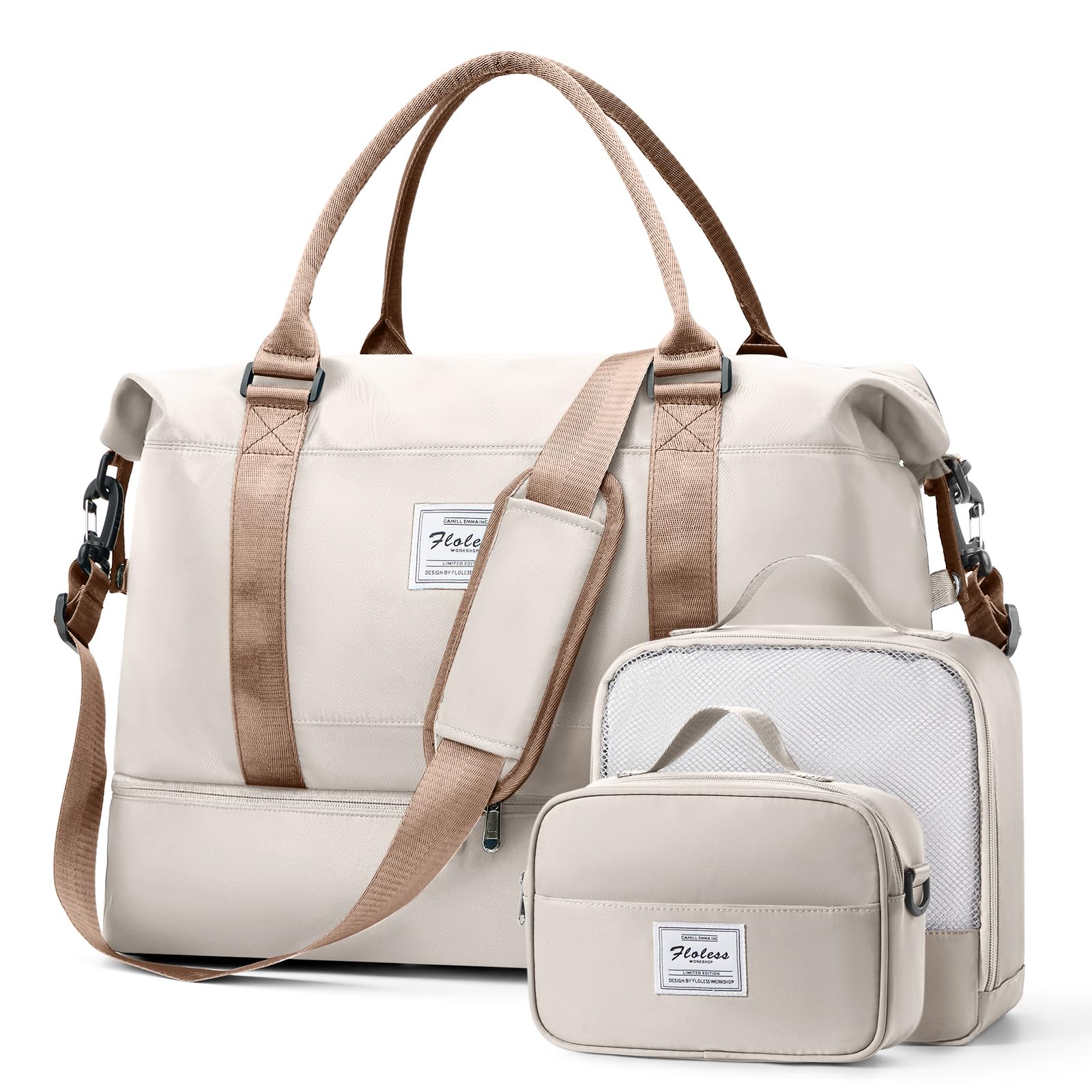 Large Weekender Bags for Women, Travel Duffel Bag with Shoe Compartment,Personal Item Travel Carry on Overnight Bag for women Travel 3PCS,Beige &|Luggage & Bags