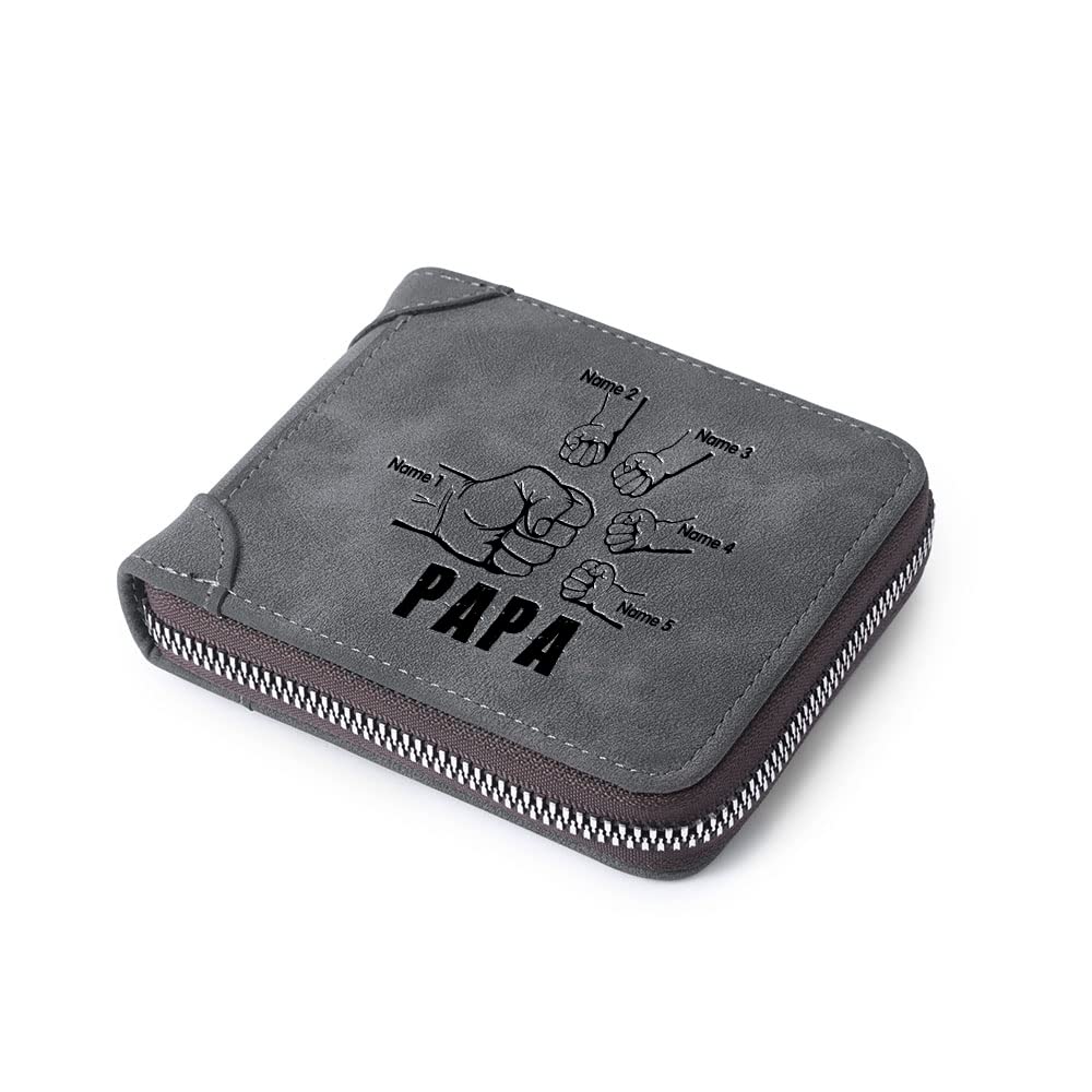 Glimmerday Custom Zipper Wallets for Men Personalised Engraved 2-5 Names Bifold Leather Wallet Purse for Dad Father Papa Grandpa (5 Names)|Luggage & Bags