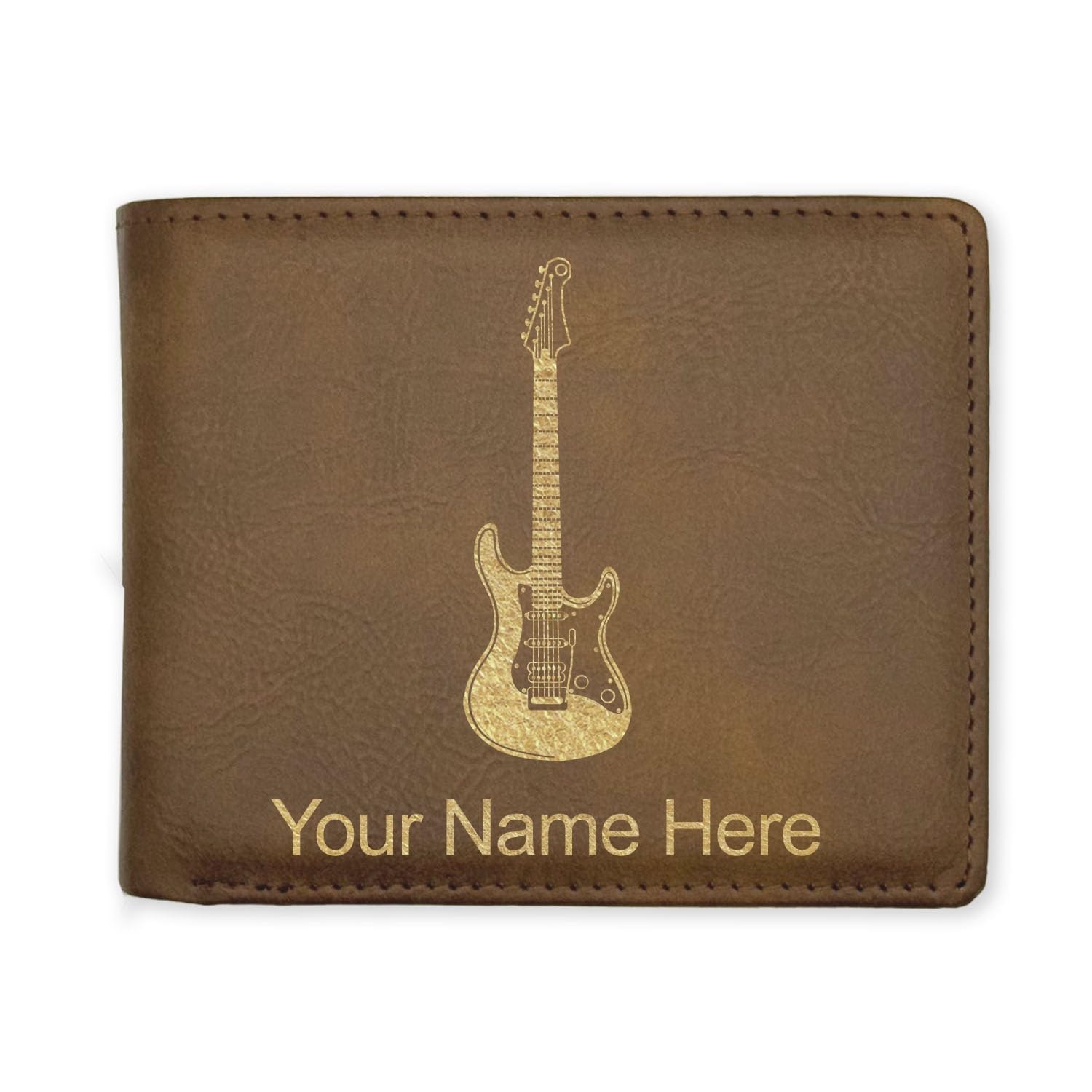 LaserGram Faux Leather Bi-Fold Wallet, Electric Guitar, Personalized Engraving Included (Rustic with Gold)|Luggage & Bags