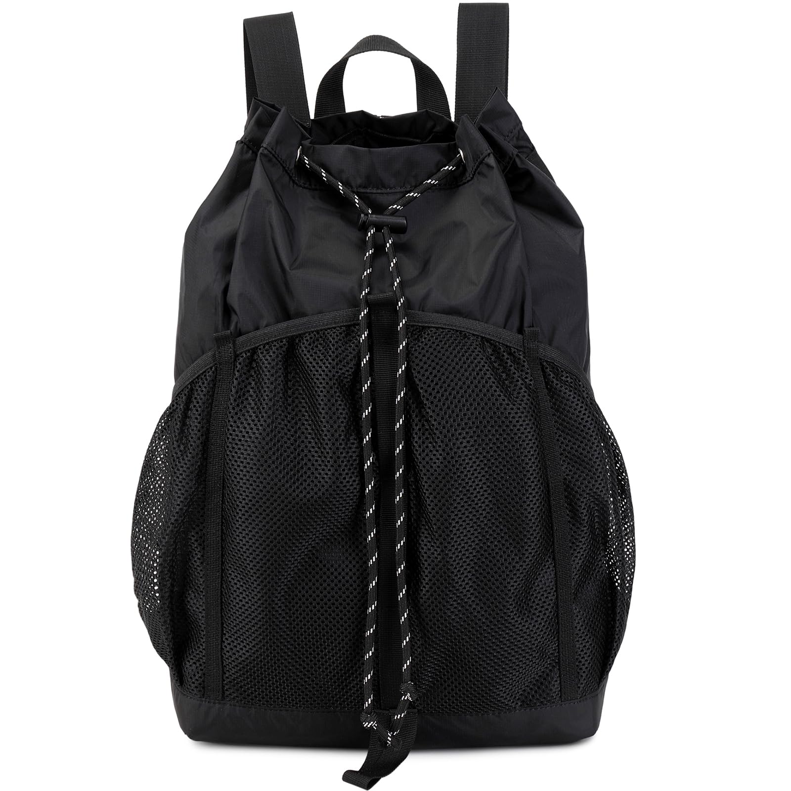 Lohol Lightweight Nylon Drawstring Backpack with Mesh Pockets for Women Men, Water Resistant String Bag for Sports Beach Swimming Camp Travel (Black)|Luggage & Bags