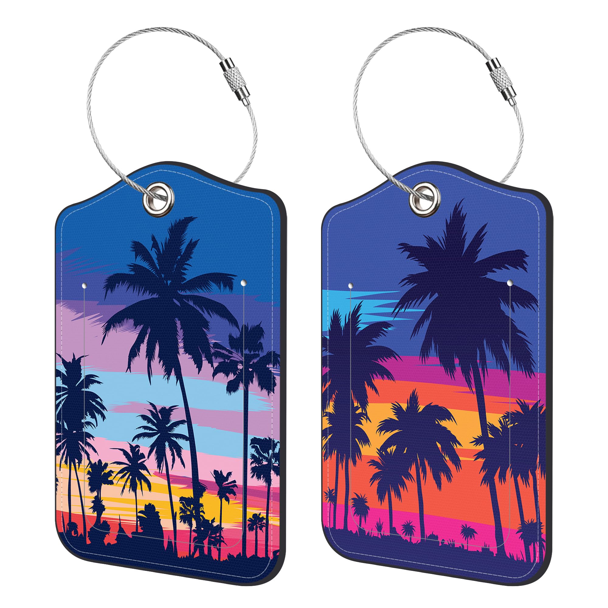 Luggage Tags for Suitcase Sunset Palm Trees Beach 2 PCS Leather Travel Luggage Tag with Stainless Steel Loop Name ID Label Privacy Cover for Women Men|Luggage & Bags