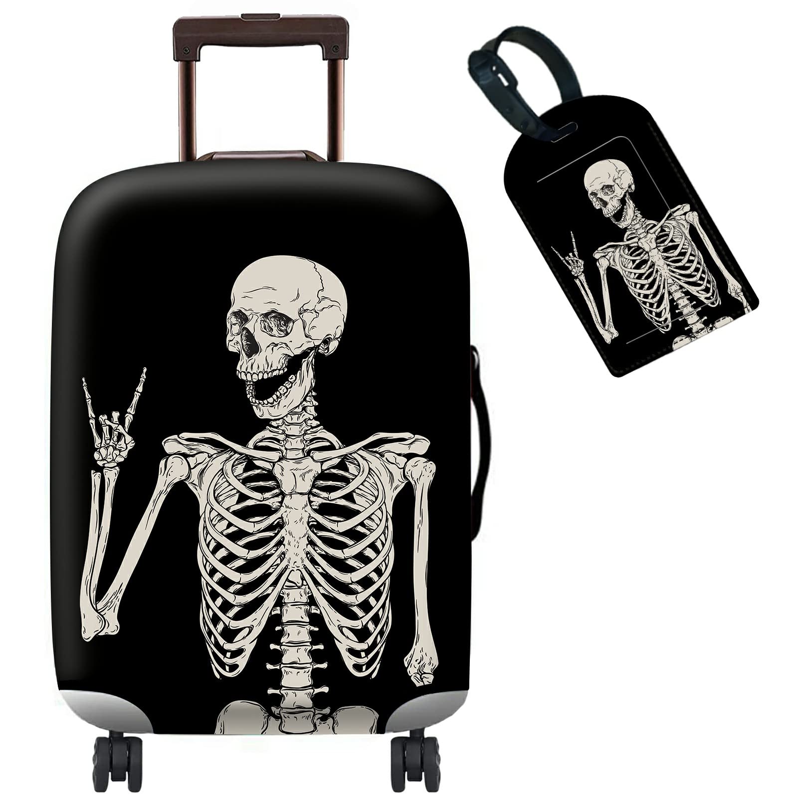 BWEGRHE Luggage Cover Suitcase Protector Plus 1 Luggage Tag, Rock Skull Travel Suitcase Cover Suitable for 18-20 inch Luggage (S) with Concealed|Luggage & Bags