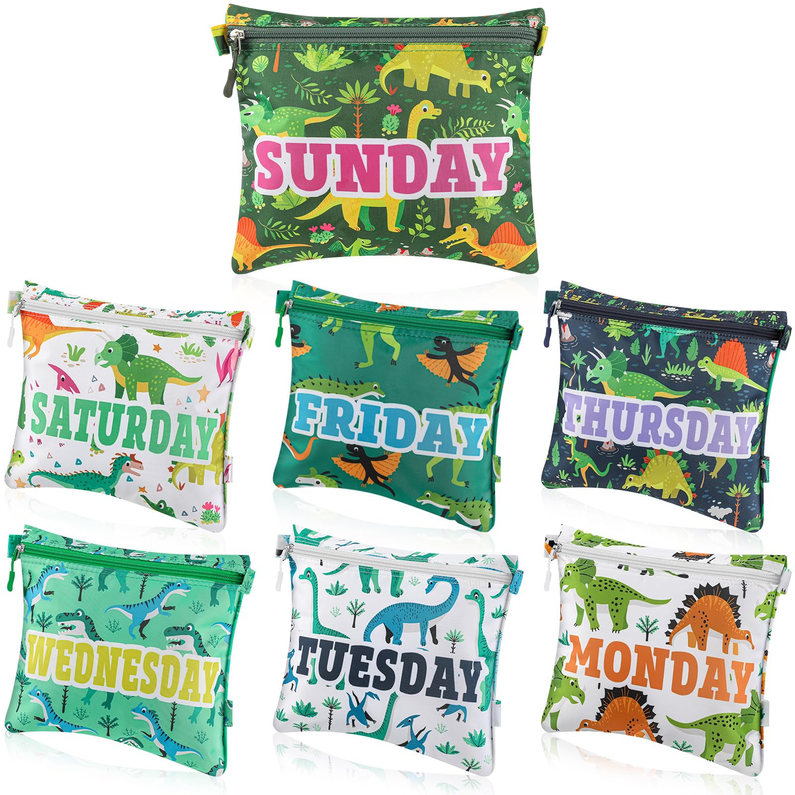Paterr 7 Pcs Packing Cubes for Travel Kids Day of Week Compression Packing Bags Colorful Luggage Suitcase Organizers Bag for Travel (Dinosaur)|Luggage & Bags