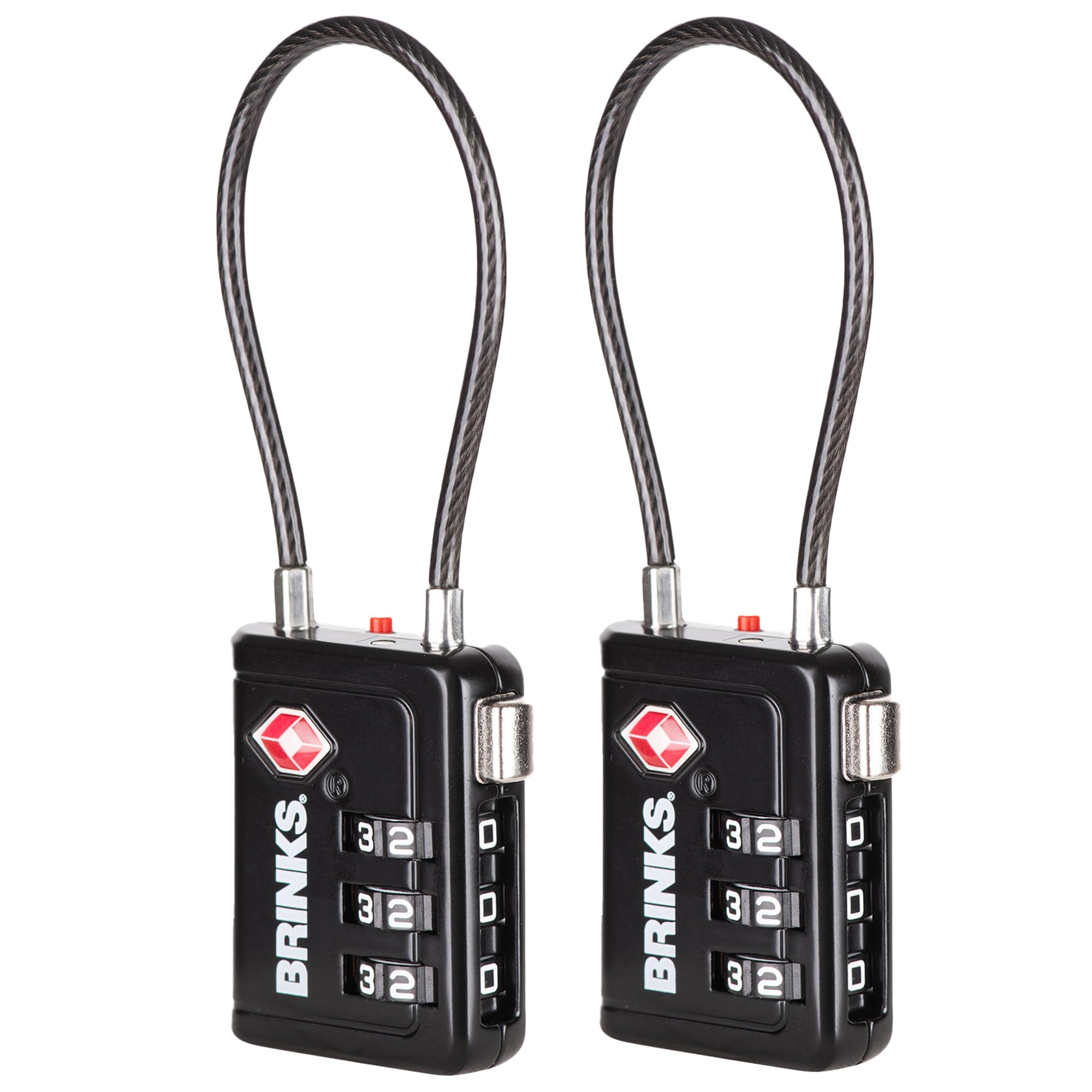 Brinks TSA Accepted Indicator Luggage Lock, Black - Resettable 3-Dial Combination, 2.5 inch Long Cable Shackle, New More Secure TSA008 Key, 2 Pack|Luggage & Bags