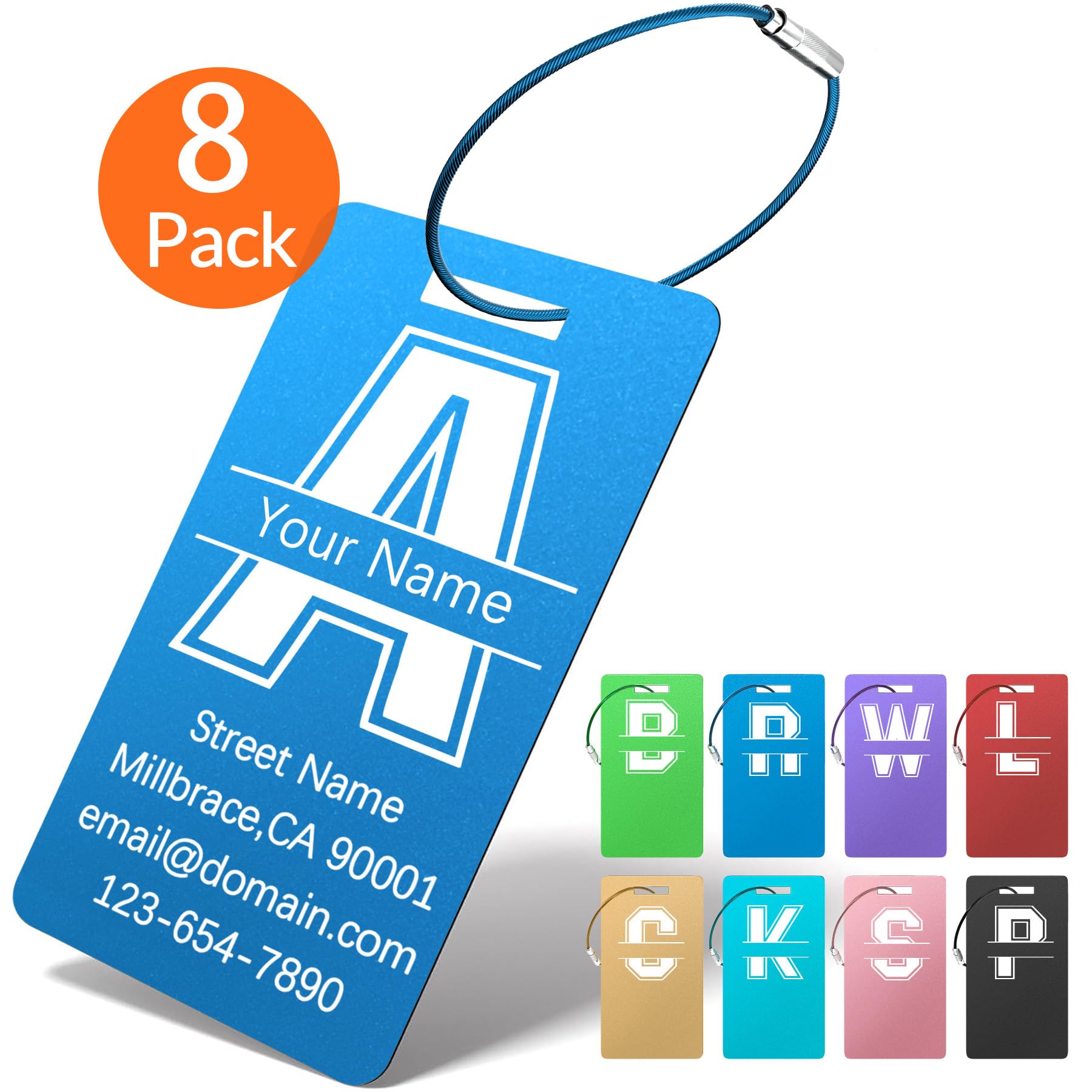 Luggage Tags for Suitcases 8 Pack, Letter Logo Custom Metal Name Tags Engraved with Logo/Name/Text, Personalized Travel Bag Tags, Luggage Identifiers|Luggage & Bags