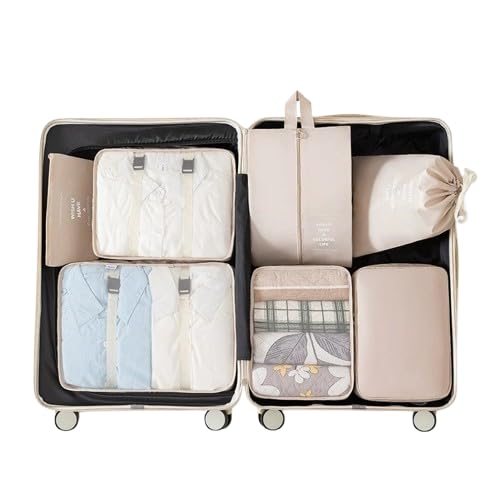 NICIFOAM 7 Set Packing Cubes for Travel, Compression Packing Cubes, Suitcase Organizers, Luggage Essentials, Travel Bags for Shoes, Clothing Beige|Luggage & Bags