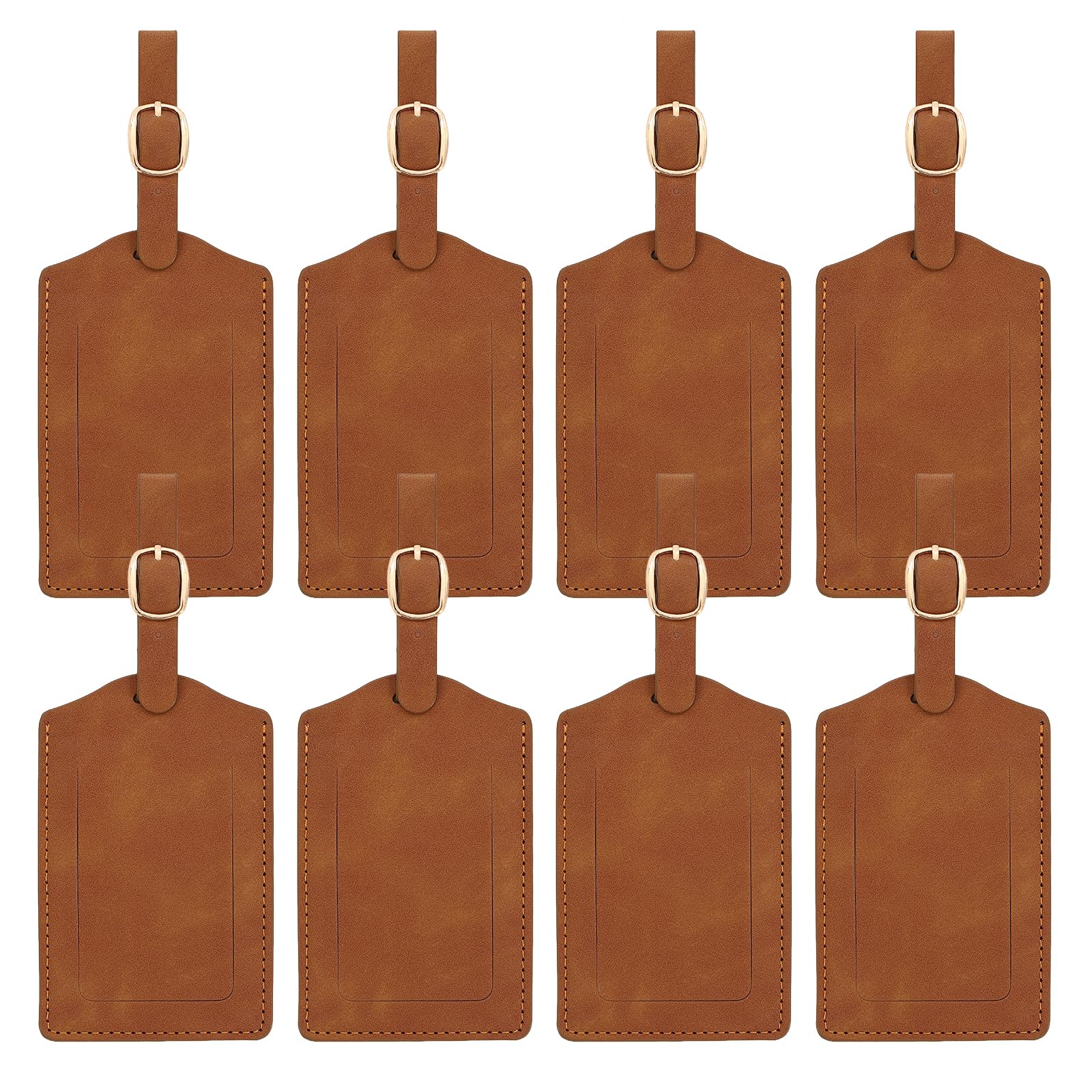 Luggage Tags TSA, Leather Tag for Luggage Travel, Personalized Suitcase Tags with Adjustable Buckle for Travel, Sports Bags, Pet Bags (8 Pack, Camel's|Luggage & Bags