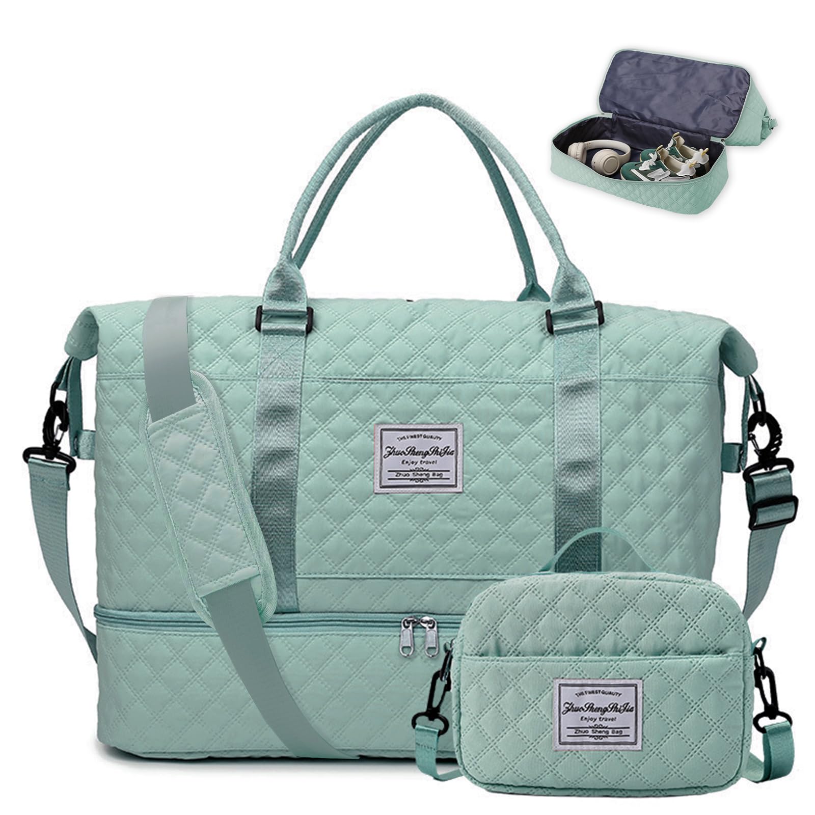 Travel Duffel Bags for Women Weekender Carry on Overnight Bag with Shoe Compartment Quilted Weekend Tote Bag Yoga Gym Duffle Bag for Airplane Hospital|Luggage & Bags