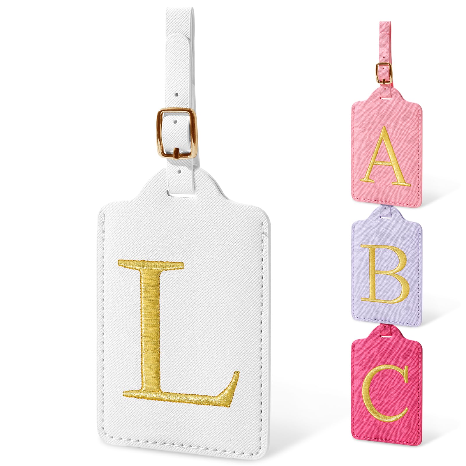 Personalized Initial Luggage Tags for Suitcases, Cute PU Leather Embroidered Letter Travel Luggage Tags, Suitcase Identifier Name Baggage Tag, Bag|Luggage & Bags