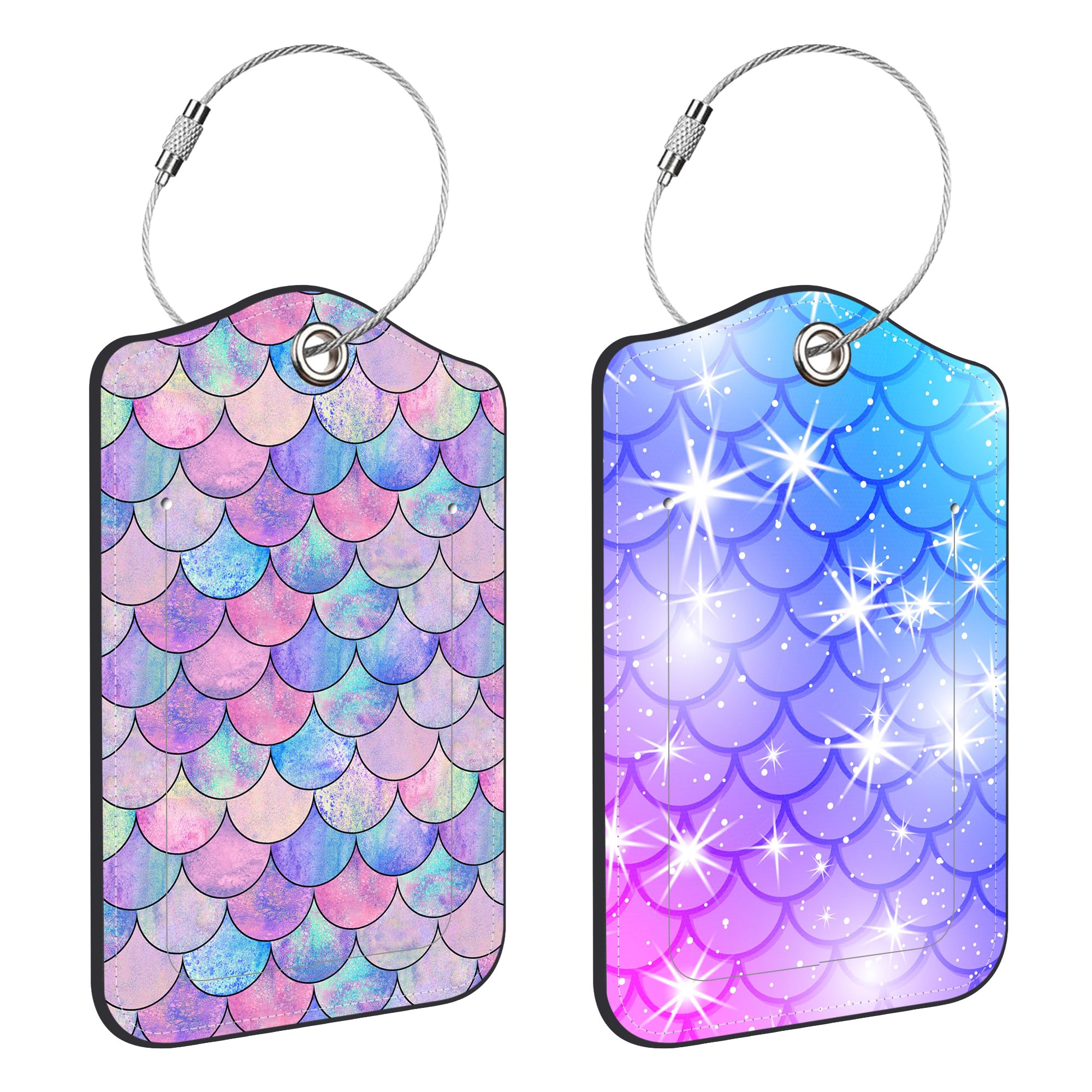 Neidius Luggage Tags for Suitcase,2 Pack Mermaid Fish Scale PU Leather Luggage Tags with Stainless Steel Loop Privacy Cover ID Address Labels,Adult|Luggage & Bags
