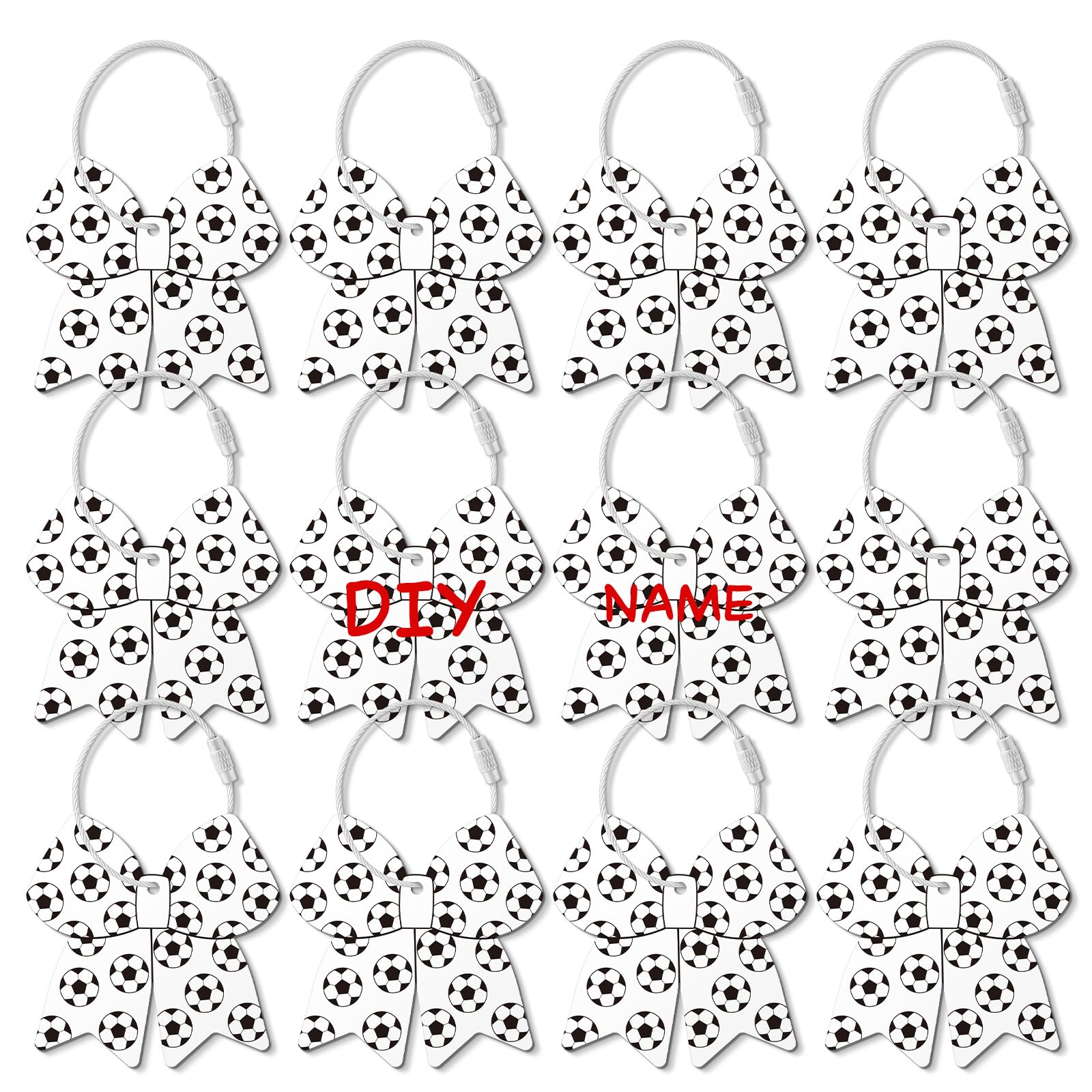12 Pcs Soccer Bow Luggage Tags for Travel Suitcase Labels with Metal Ring 2.75in Soccer Bow Keychain PVC Name ID Card and DIY Pocket Hug Card for Men|Luggage & Bags