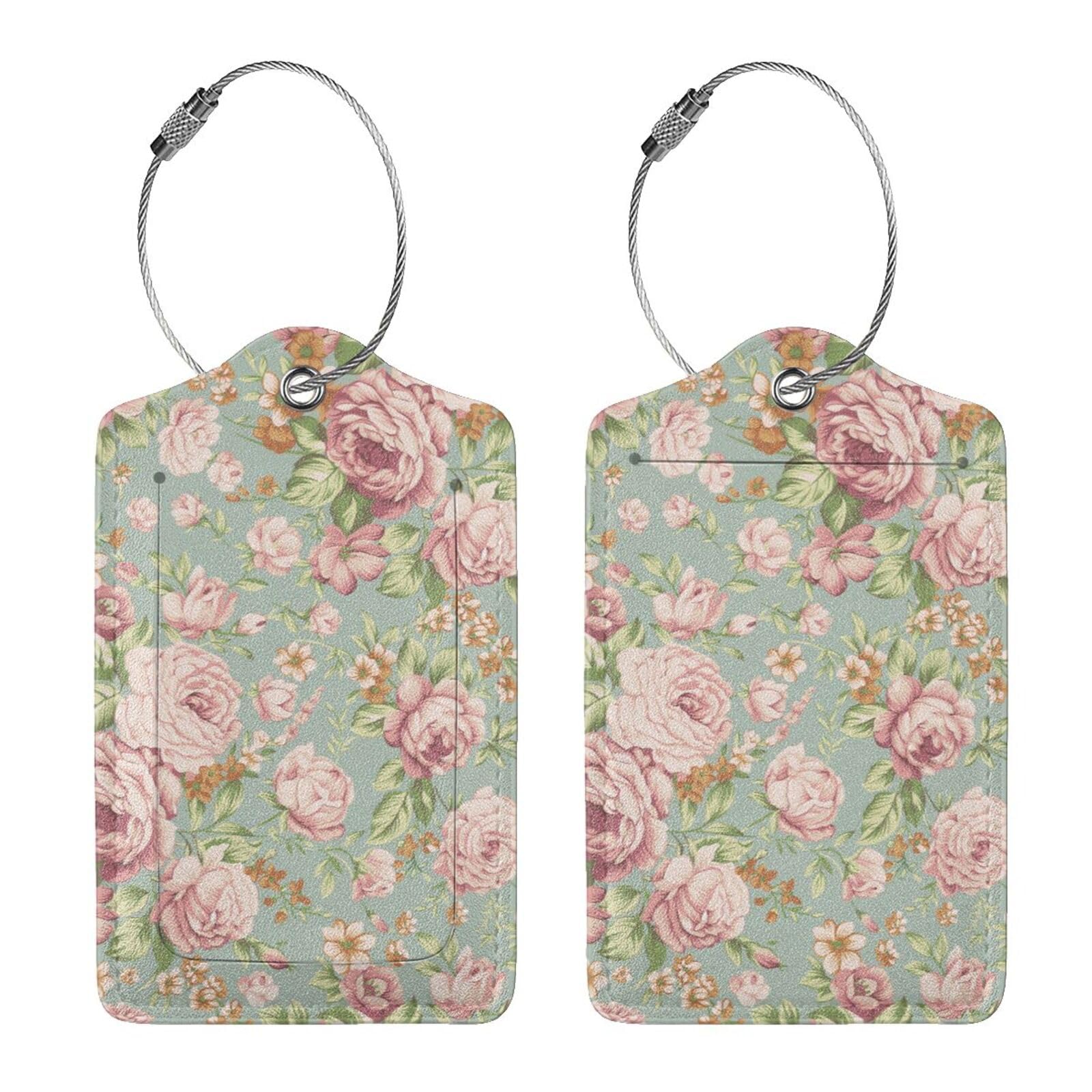 2 Pack Pink Rose Luggage Tags for Suitcases, Colorful Bunch Retro Nostalgic Floral Suitcase Name ID Label and Metal Loop for Women Men Baggage Bag|Luggage & Bags