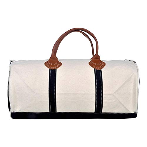 Tag&Crew Carryon Women's Round Duffle Natural Canvas Bag with Leather Handles Adjustable Shoulder Strap Metal Accessories Sturdy Zippers, Designed for|Luggage & Bags