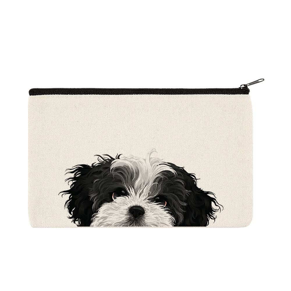 WIRESTER Canvas Zipper Makeup Bag, Cosmetic Pouch, Organizer Case for Women Girl, Multi-Purpose Travel Cosmetic Bag - Black White Shih Tzu Dog|Luggage & Bags