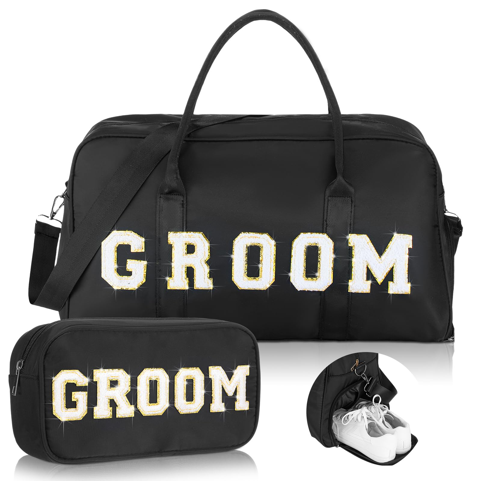 Bulyoou 2 Pcs Wedding Weekender Bag Bride Groom Duffle Bag Chenille Letter Patch Travel for Bridal Shower Honeymoon Gift(Groom,Black)|Luggage & Bags