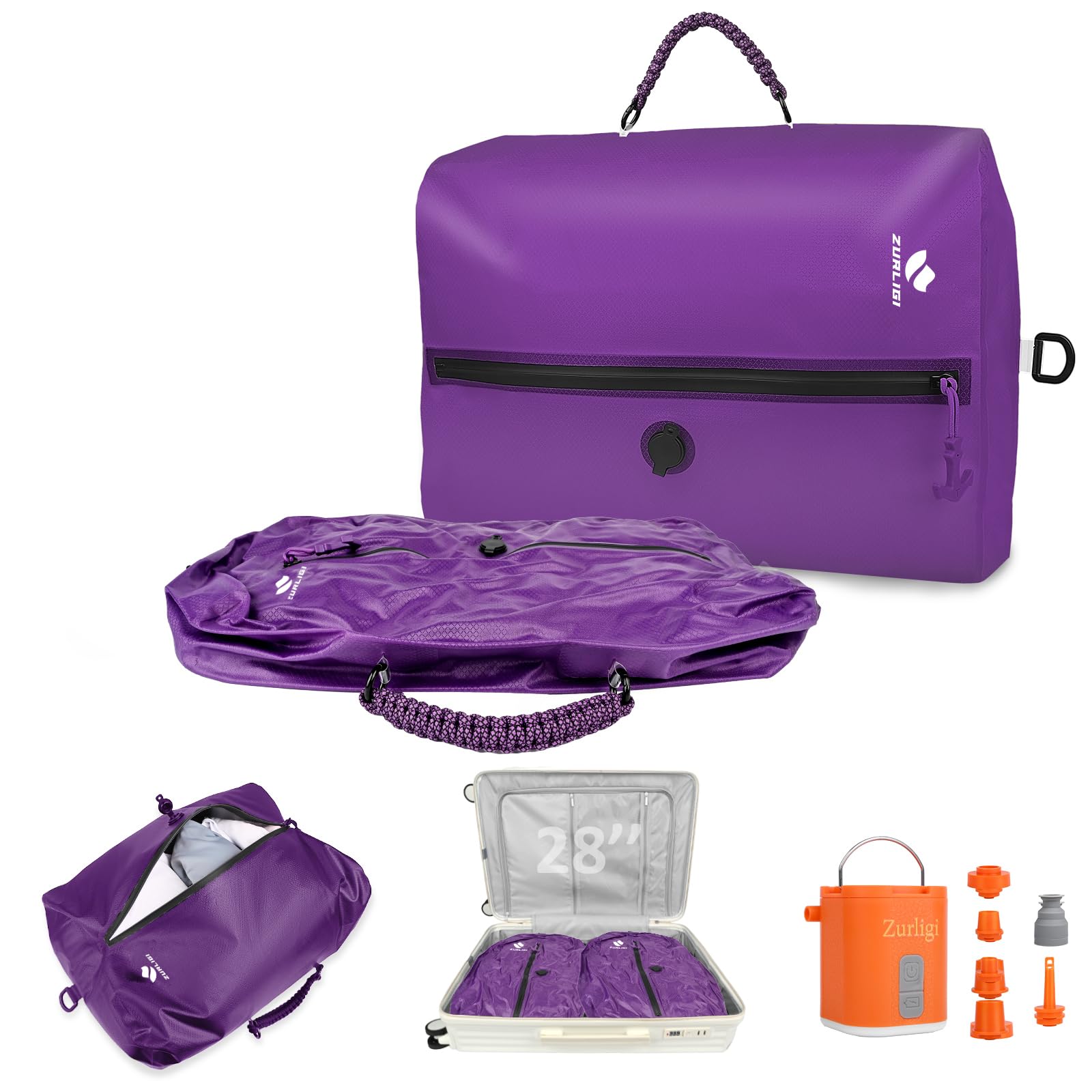Zurligi Vacuum Compression Bags with Pump for Travel - Reusable Portable Travel Pack Vacuum Bag Kit for Carry-On Suitcase and Backpack, Vacuum Seal|Luggage & Bags