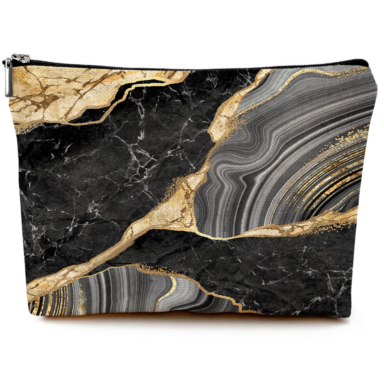 Givotin Cute Makeup Bag for Purse Canvas Waterproof Funny Cosmetic Bags for Women Zipper Travel Toiletry Pouch-Black Marble Makeup Bags|Luggage & Bags