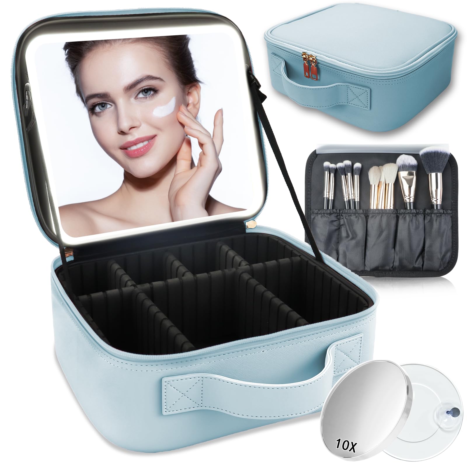 SUILU Makeup Bag with Led Mirror,Travel Makeup Organizer with 3 Color Setting & 10X Magnifying Mirror, Portable Storage and Adjustable Dividers Travel|Luggage & Bags