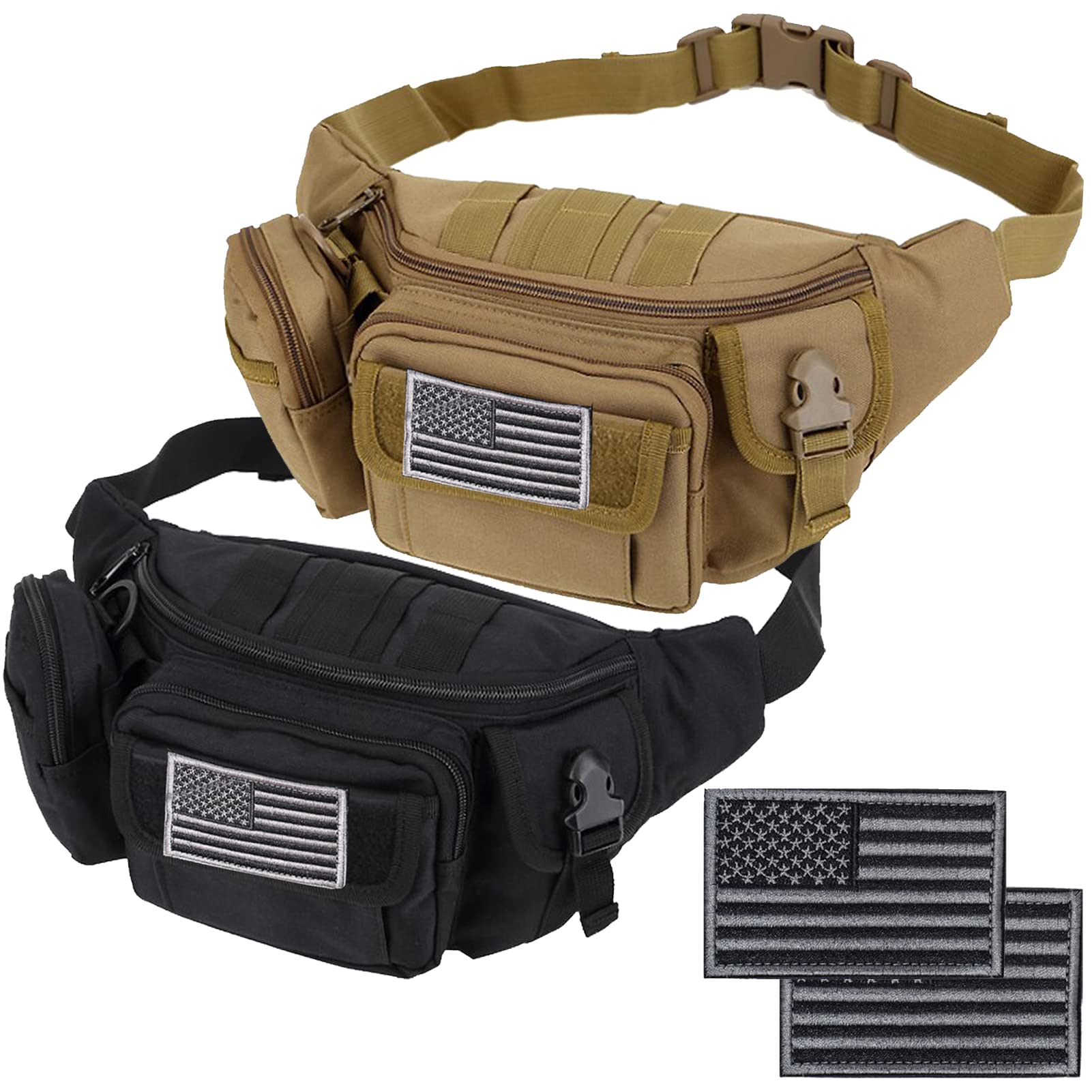Tactical Fanny Packs, Military Waist Bag Utility Hip Belt Bags for Hiking Climbing Fishing Cycling Hunting with U.S Patch (Tan+Black)|Luggage & Bags