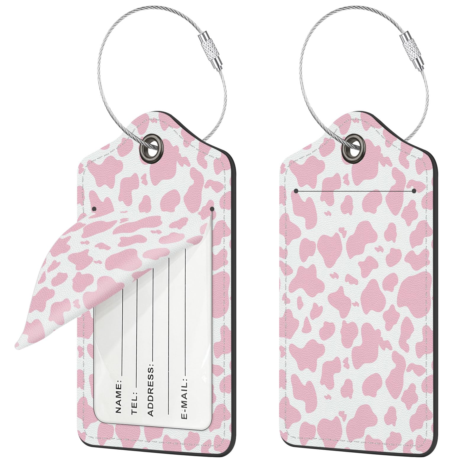 UntilPlan Printing Luggage Tags, 2 Pack PU Leather Luggage Tags for Suitcases, with Stainless Steel Loop and Address Card, Privacy Protection Bag Tags|Luggage & Bags