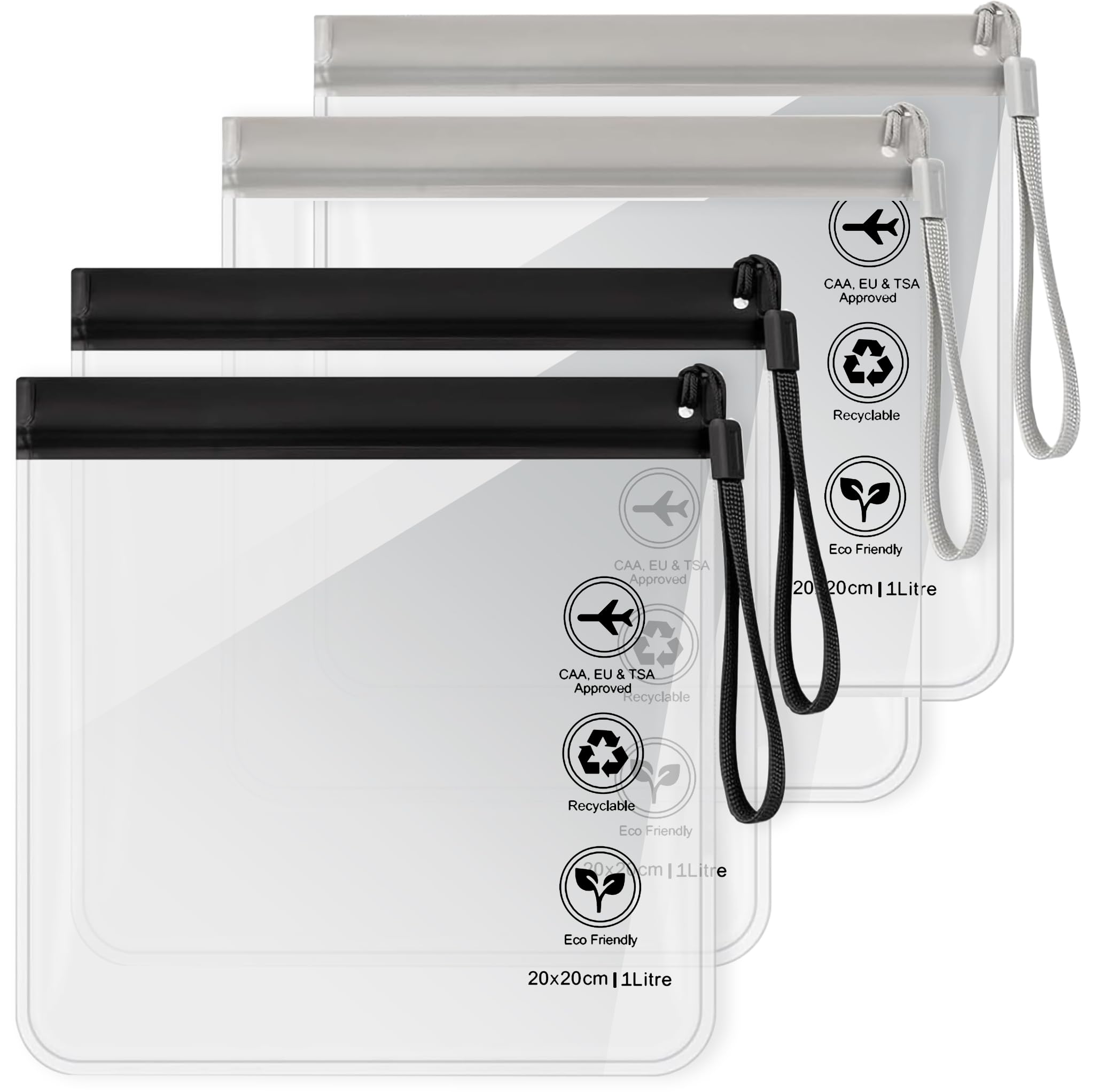 Caija-H 4Pcs Reusable TSA Approved Security Clear Toiletry Bag-Quart Size Travel Bag Tsa Approved for EU UK & US Carry-on Regulations Security Travel|Luggage & Bags