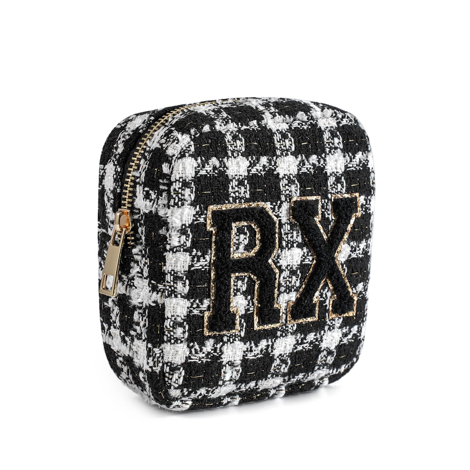 RSRSLEII Small Medicine Bag for Travel, Personalized RX Chenille Letters Checkered Pouch for Women and Girls, Cute Meds Drug Makeup Bags with Zipper (|Luggage & Bags