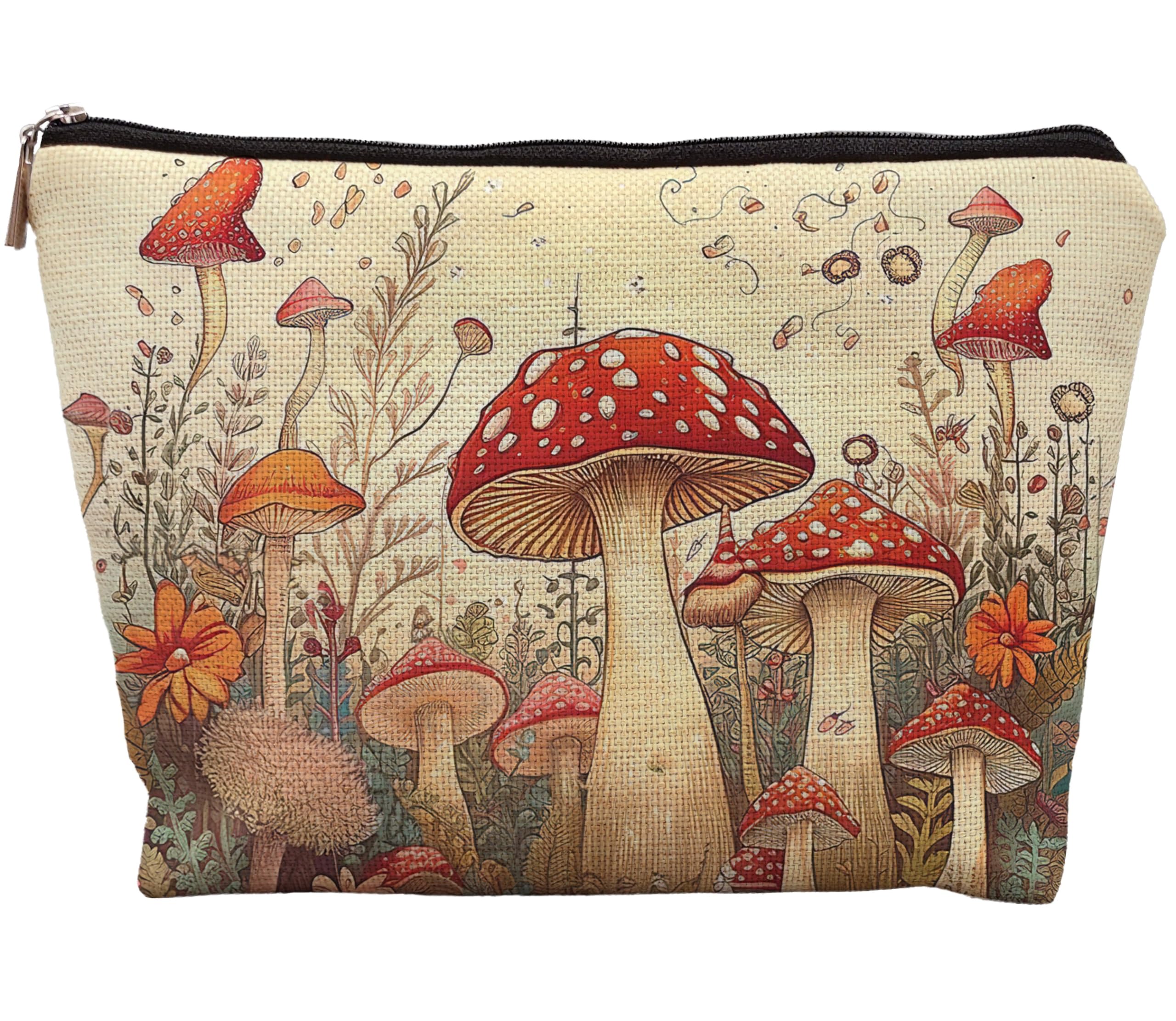 uinwk Vintage Red Mushroom Makeup Bag, Mushroom Gifts for Women, Gifts for Mushroom Lovers, Cottagecore Mushroom Art Makeup Cosmetic Bag for Women,|Luggage & Bags