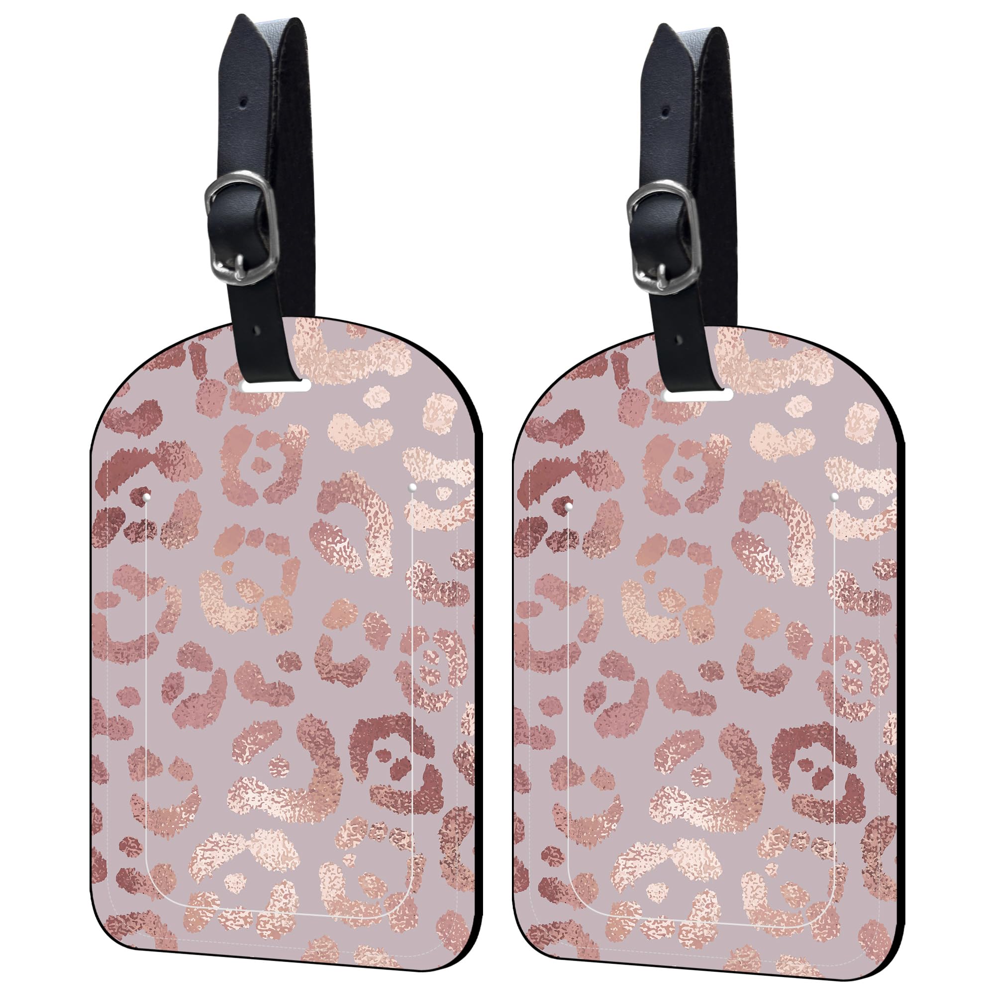 Neidius 2 Pack Luggage Tags Rose Gold Leopard PU Leather Baggage Handbag Suitcase Tags with Secure Strap Privacy Cover ID Labels,Business Travel|Luggage & Bags
