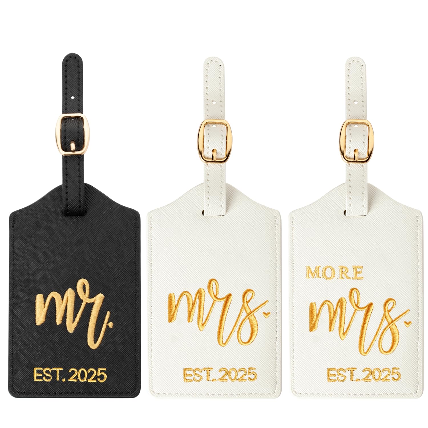 Mr, Mrs and More Mrs Luggage Tags, Embroidered Faux Leather Suitcase Tags, Wedding Gift for Couple, Honeymoon Travel Accessories, Bridal Shower &|Luggage & Bags