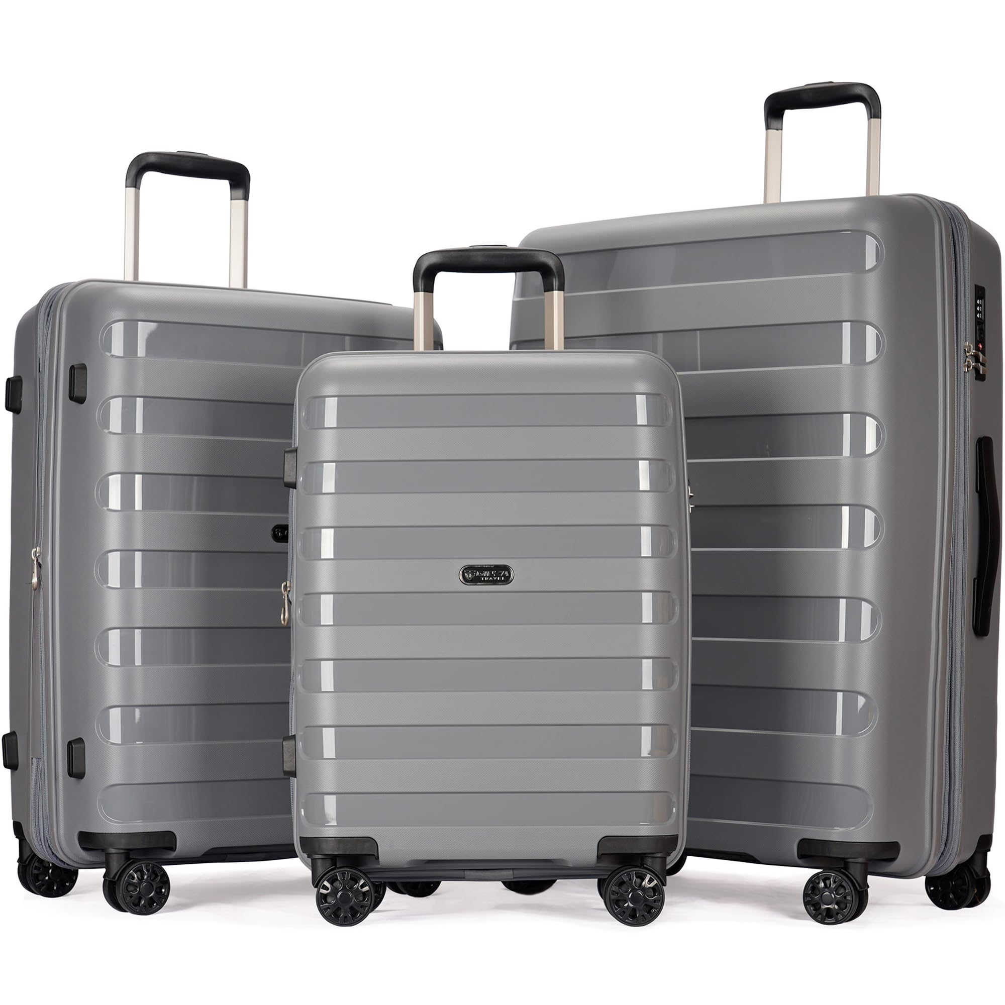 GinzaTravel PP material 3-piece expandable luggage sets with Spinner Wheels, Suitcase with TSA Lock,Large Luggage for Family Travel carry on 20/24/28,|Luggage & Bags